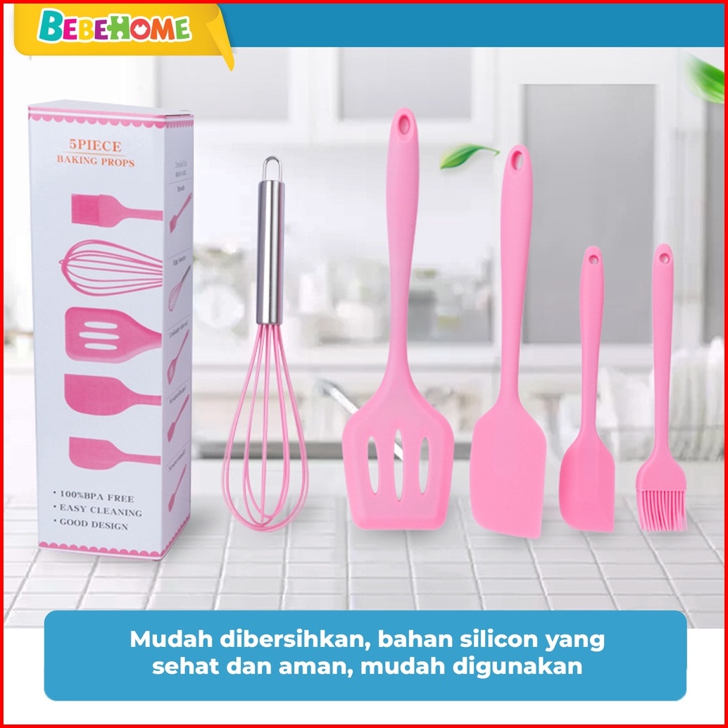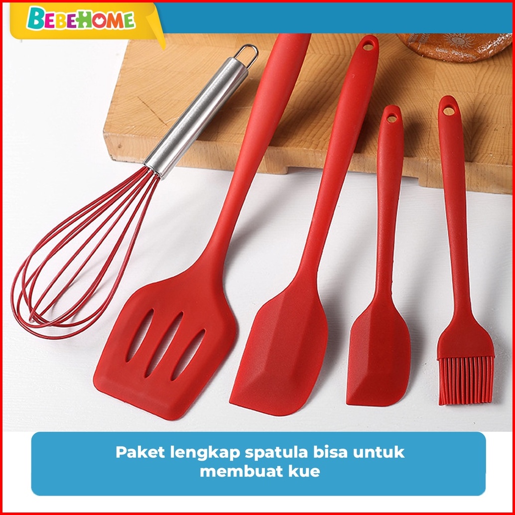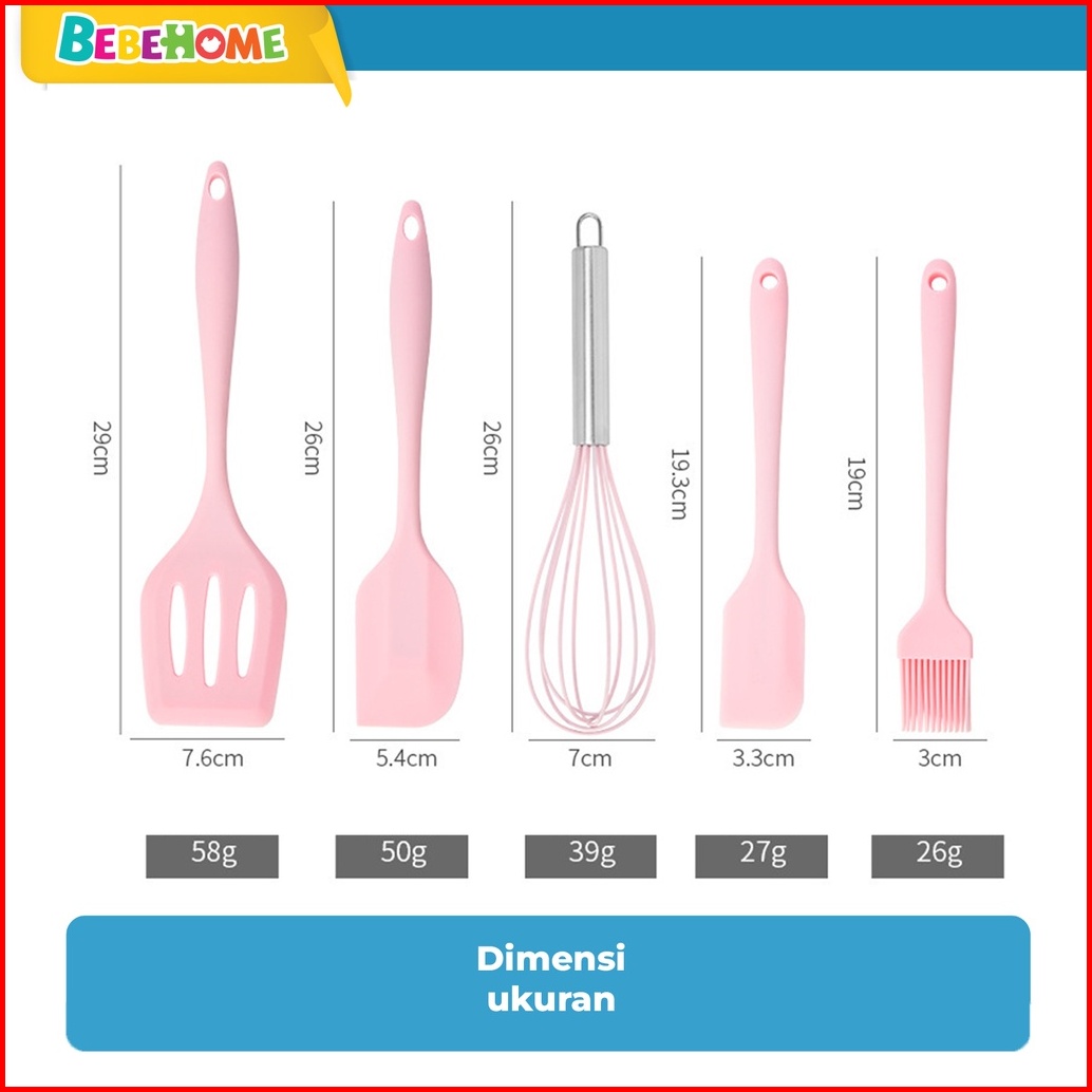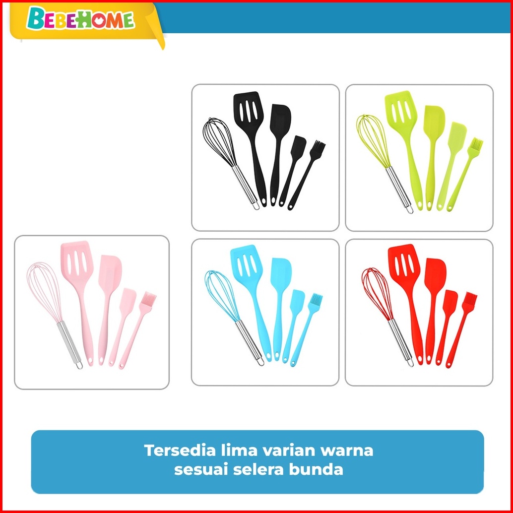 Bebehome Set Spatula Sutil Silikon Non Stick Cooking Tools Isi 5 Pcs Peralatan Masak Dapur Spatula Silikon