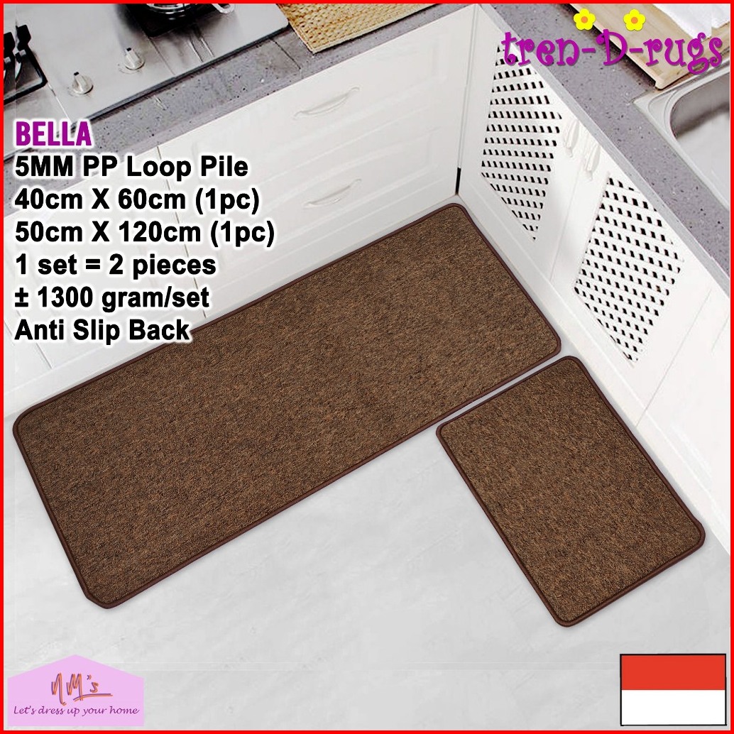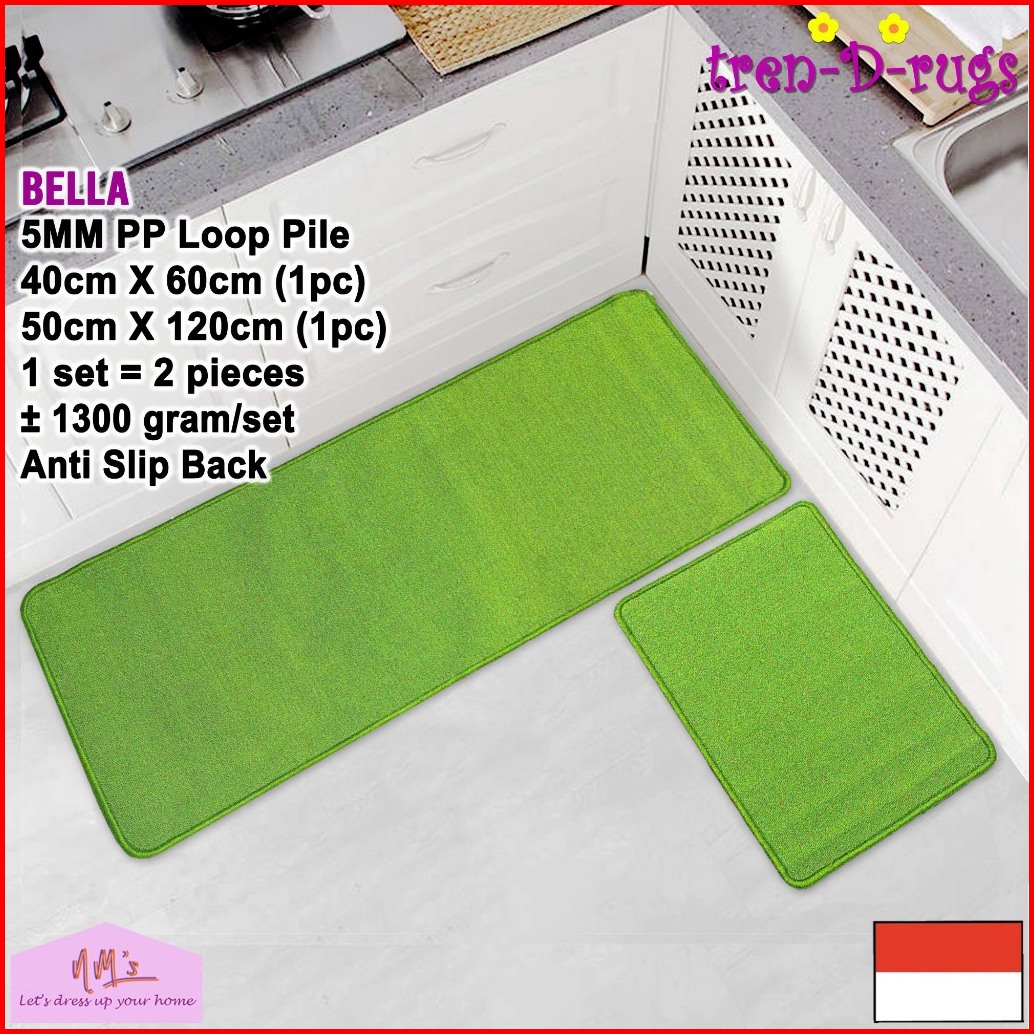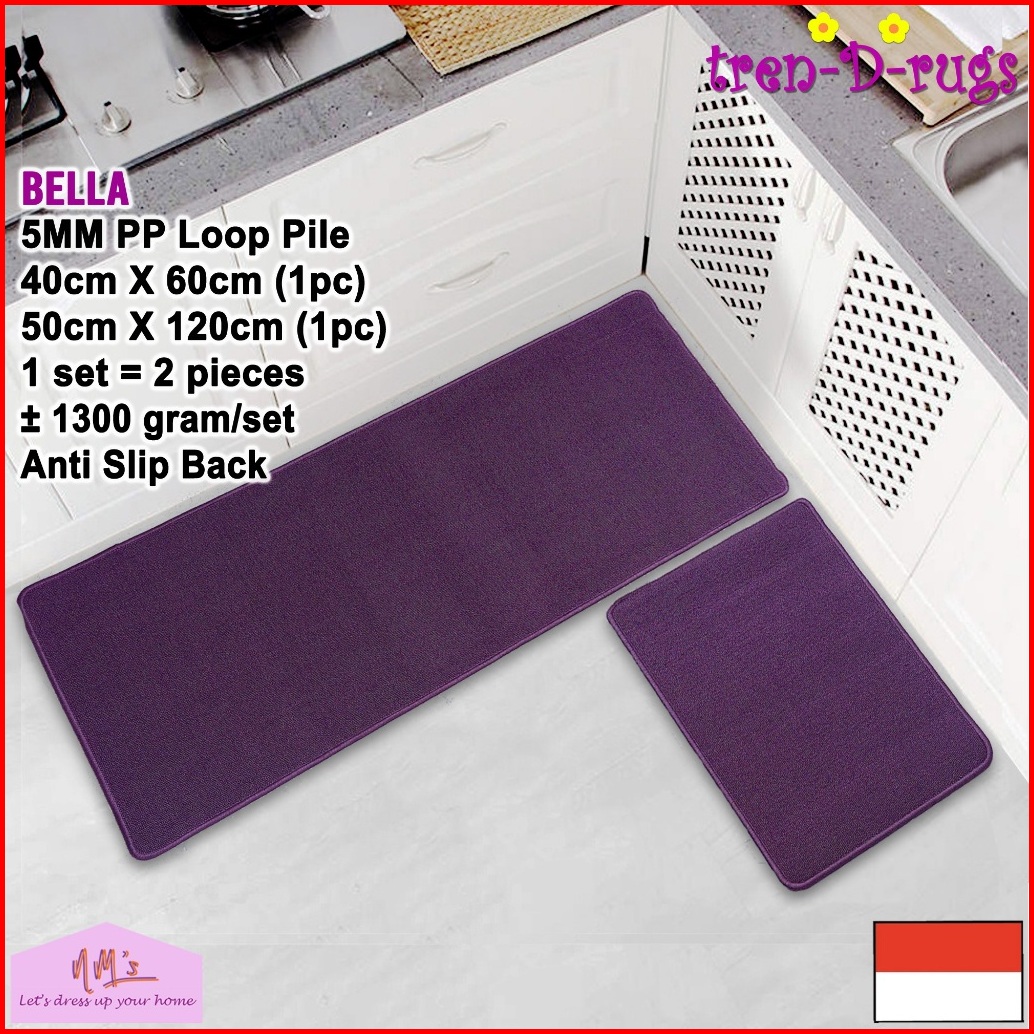 Tren-d-rugs Keset Kaki Polos Lantai Dapur Panjang Lorong Runner Kitchen Mat Anti Slip 1 Set Isi 2pcs - Nms