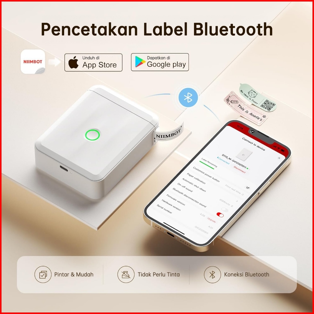 Niimbot D110 Perekat Label Termal Portabel Nirkabel Bluetooth Printer Stiker