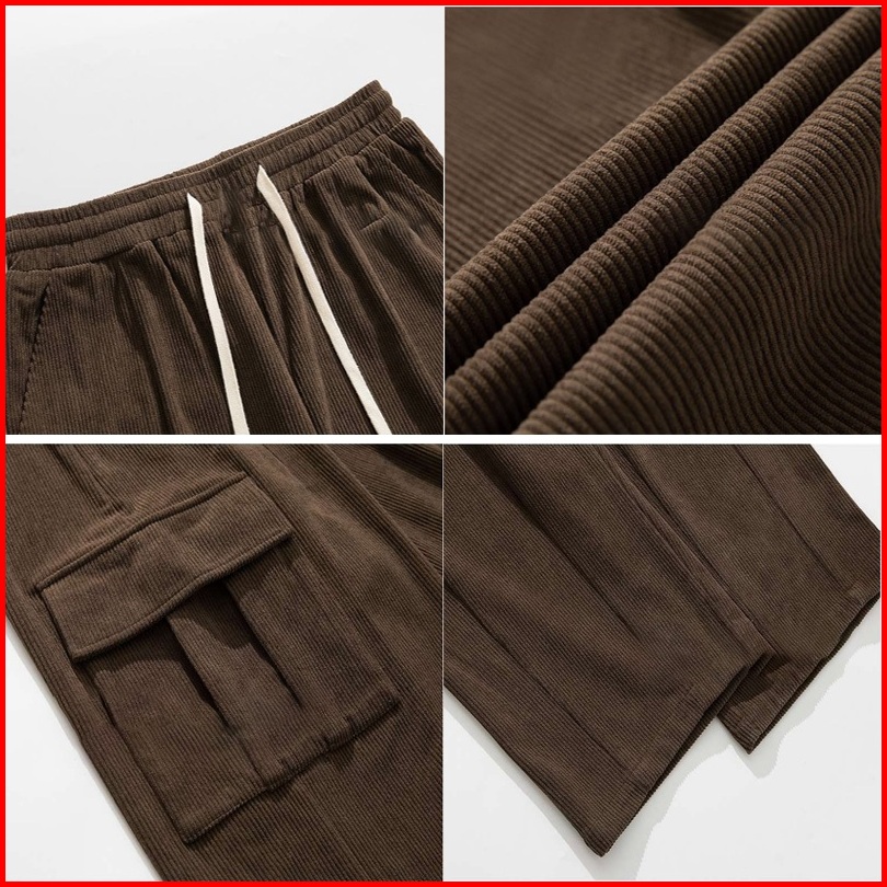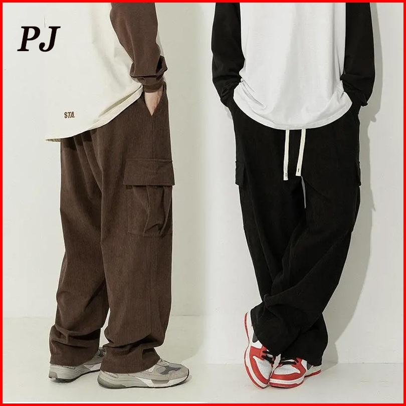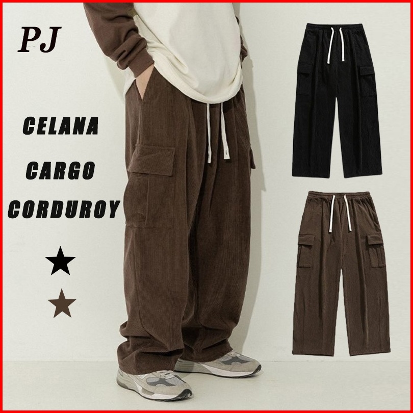 Celana Cargo Corduroy Pria Cokelat Celana Kargo Panjang Pria Hitam Loose Pants Celana Gombrang Pria Celana Panjang Pria