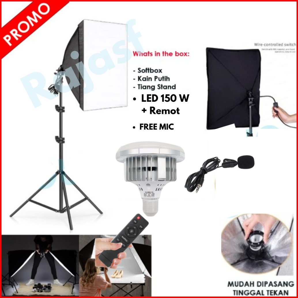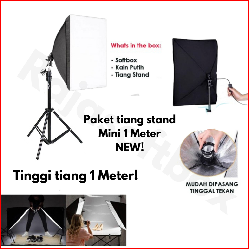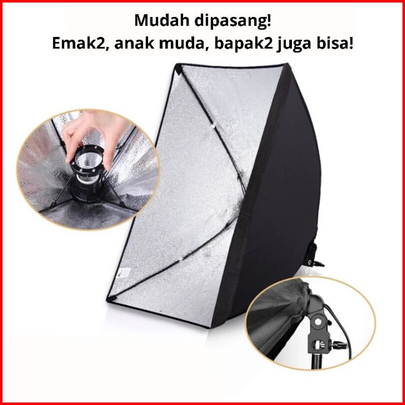Paket Studio Foto Light Stand 2m Softbox 1 Socket E27 Lampu Lighting Video Reflektor