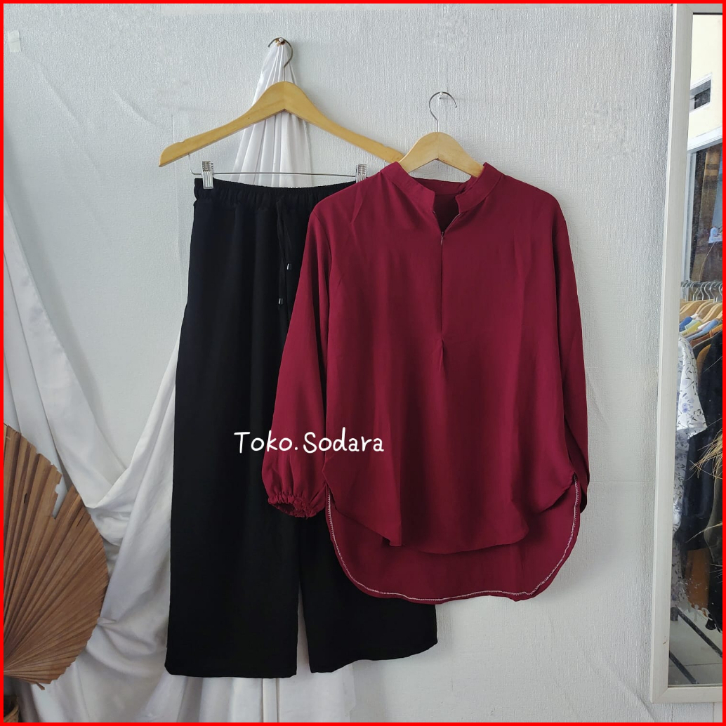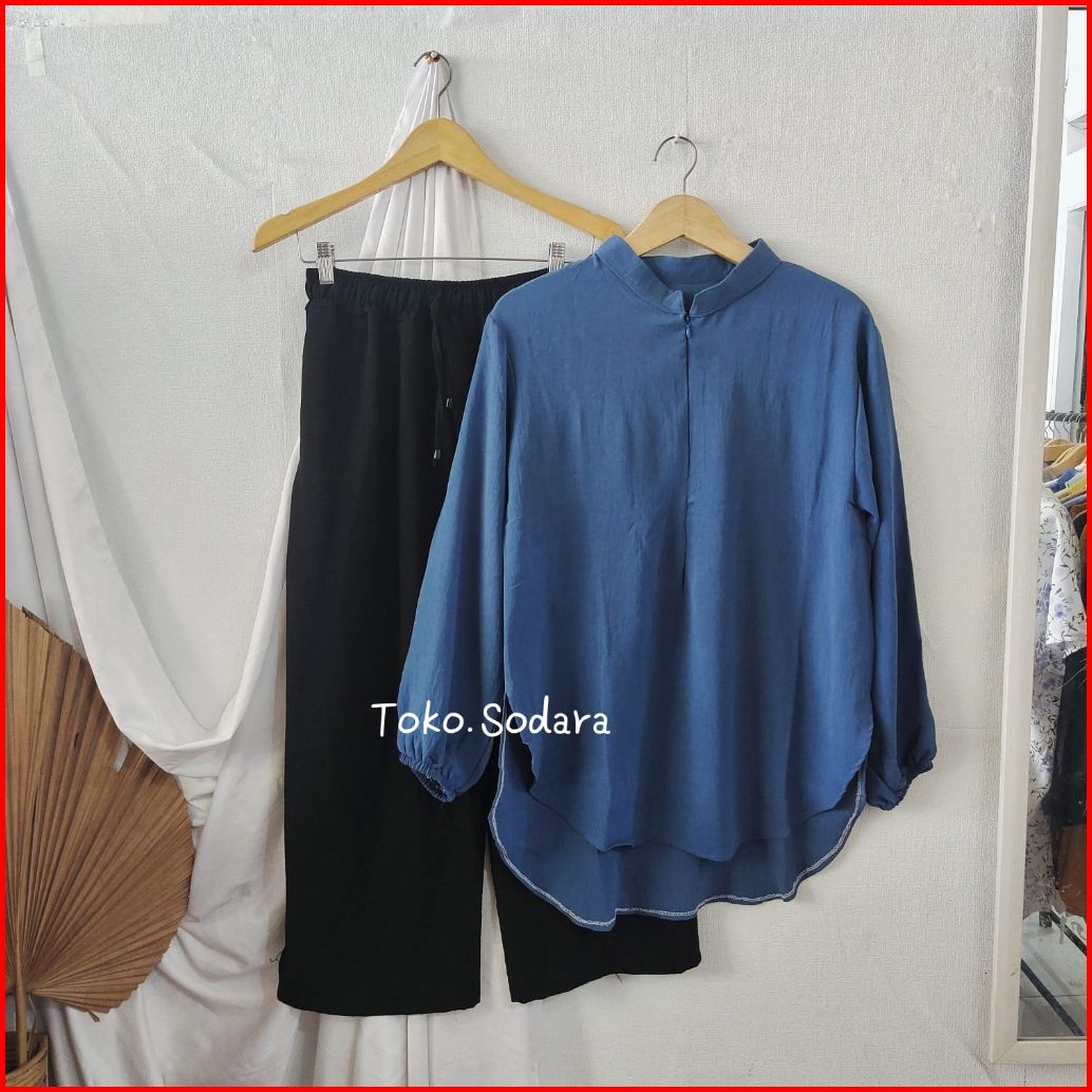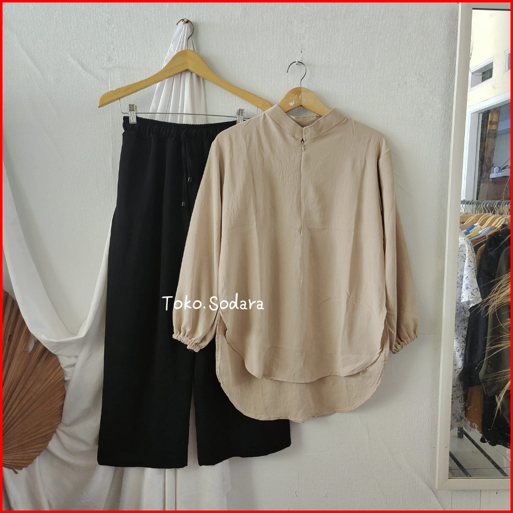 Setelan Fuji Crinkle One Set Pakaian Wanita Resleting Dada Free Bross