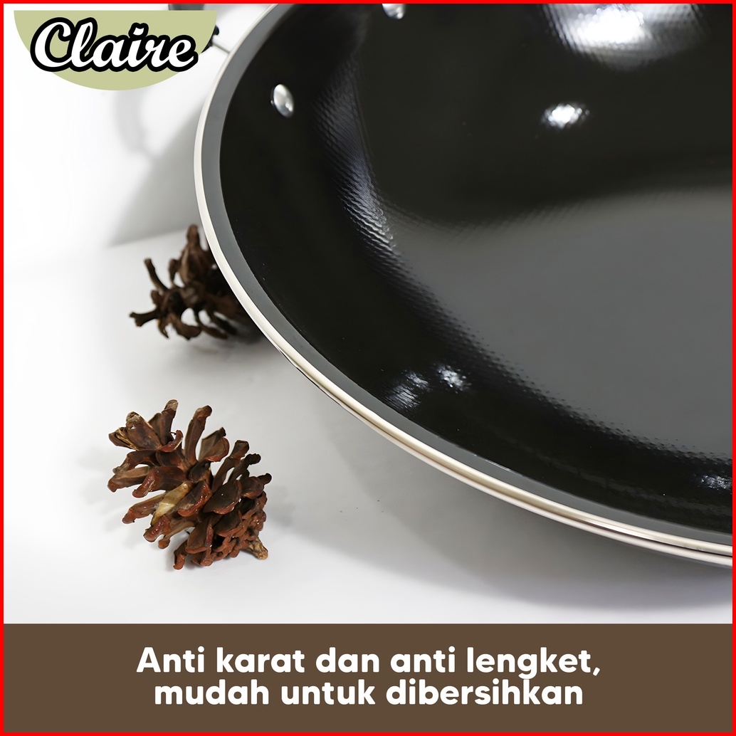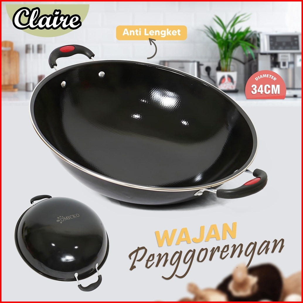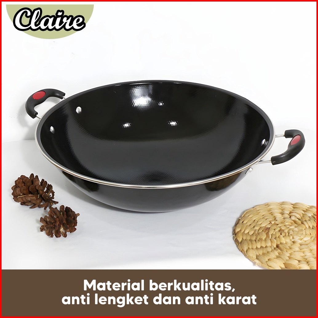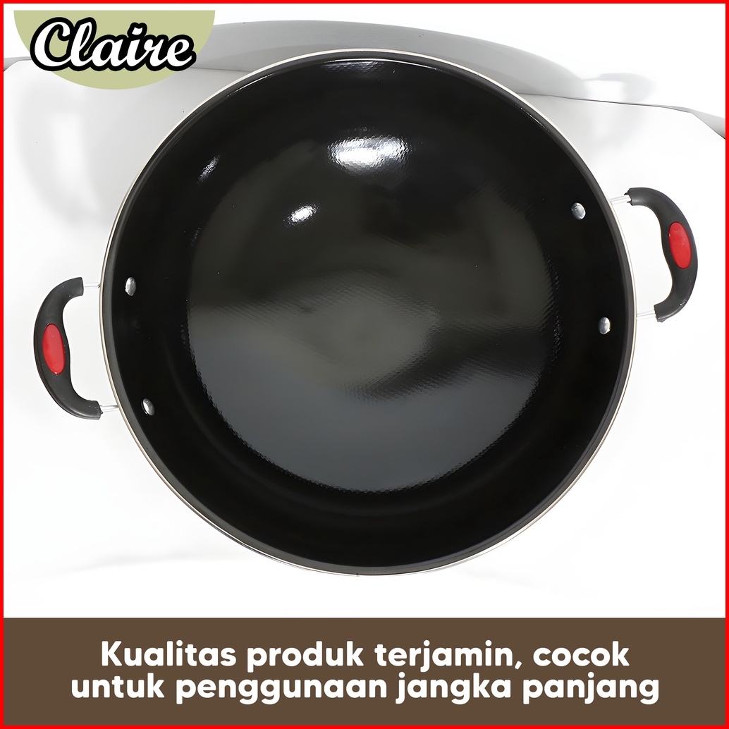 Wajan Enamel 34cm Wajan 2 Kuping Wajan Hitam Anti Lengket Peralatan Memasak