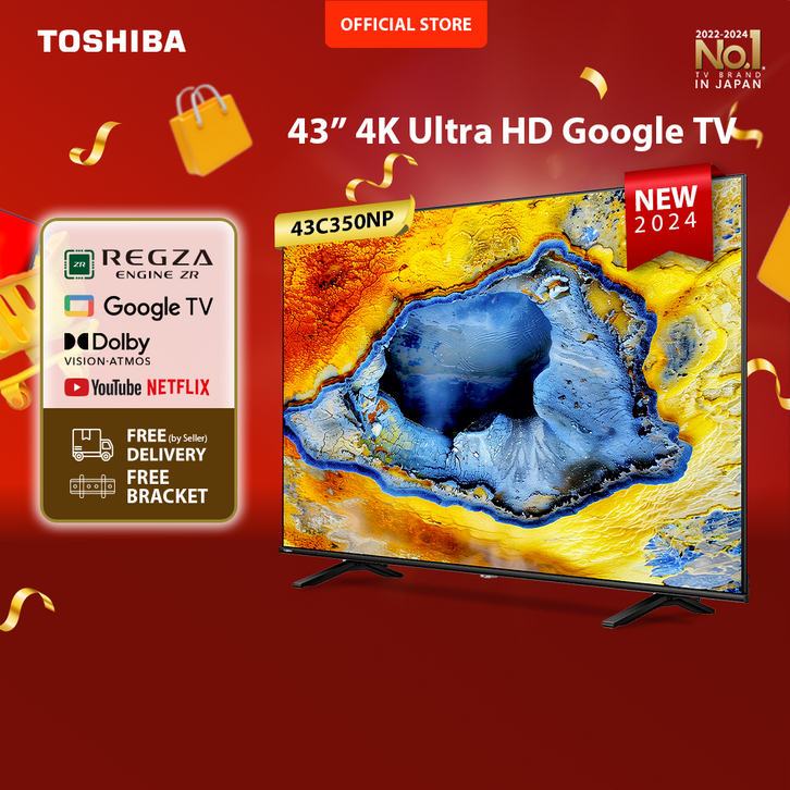 [FREE BRACKET] Toshiba TV 43" 4K UHD Google TV - Dolby Vision Atmos VRR ALLM Netflix Disney+ Youtube Digital - 43C350NP