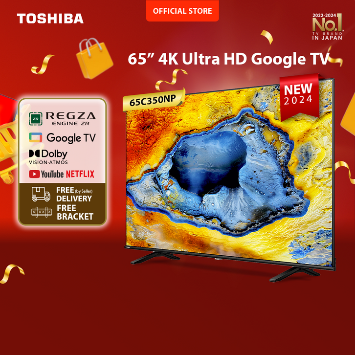[FREE BRACKET] Toshiba TV 65" 4K UHD Google TV - Dolby Vision Atmos VRR ALLM Netflix Disney+ Youtube Digital - 65C350NP