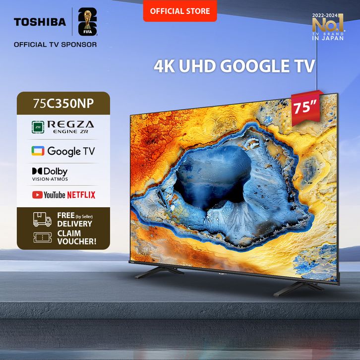 [FREE BRACKET] Toshiba TV 75" 4K UHD Google TV - Dolby Vision Atmos VRR ALLM Netflix Disney+ Youtube Digital - 75C350NP