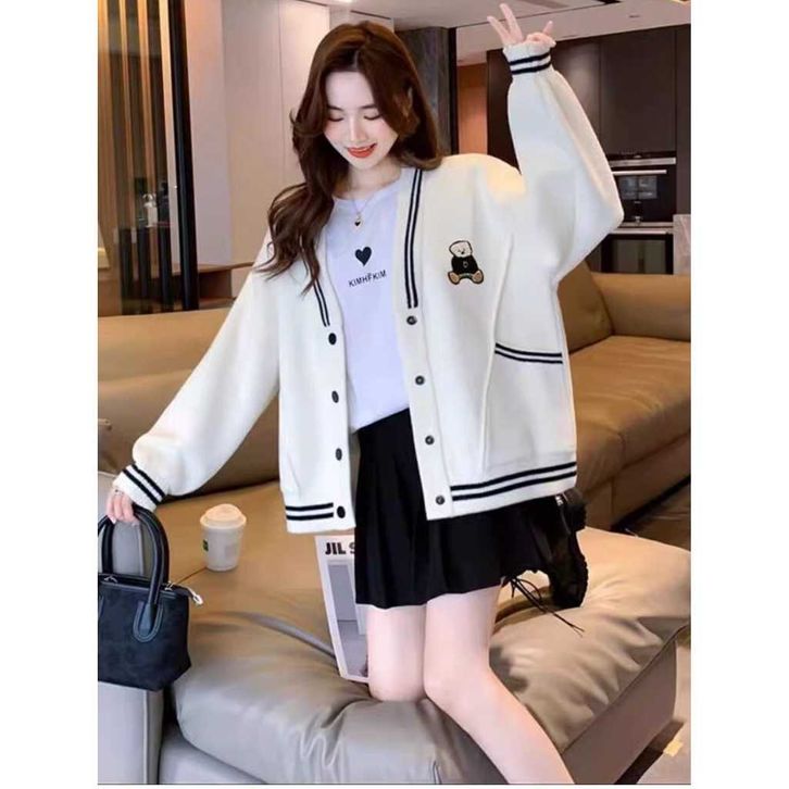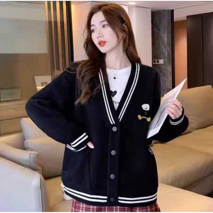 cardigan wanita/korean styls/ pria/rajut/wanita jumbo/polos/motif/korean kerkinian/BORDIER !! COOL BEAR CARDIE SWEATER -