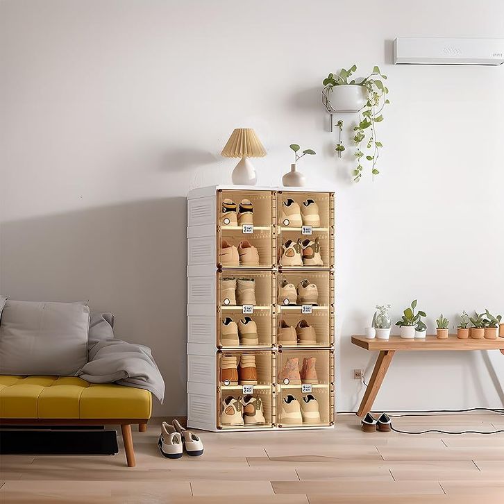 Rak Sepatu Tertutup Rak Sepatu Susun Isi 2 Baris 12 Pasang Sepatu Rak Sepatu Minimalis Pintu Magnet Transparan Anti Debu