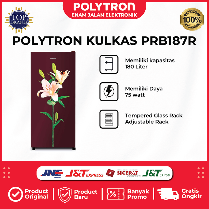 Polytron Kulkas 1 Pintu 180L Direct Cooling - PRB-187R / PRB 187 R / PRB187 / PRB187R