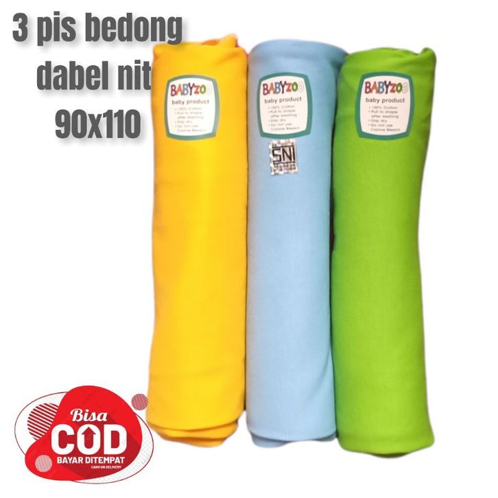 Promo Paket Bundle Kain Bedong Bayi 3 Pis Bedong Polos 90x110 Bahan Dabelnit Terlaris