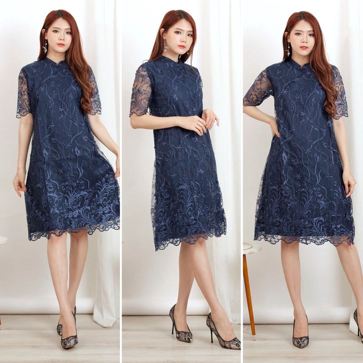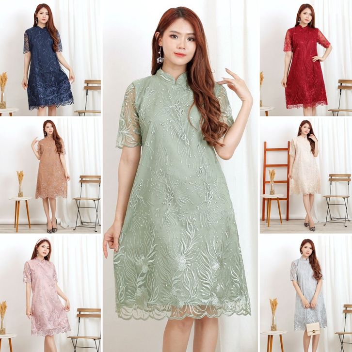 dress kondangan brukat dress cheongsam china imlek dress shanghai brukat tulle tile bordir dress kondangan non hijab