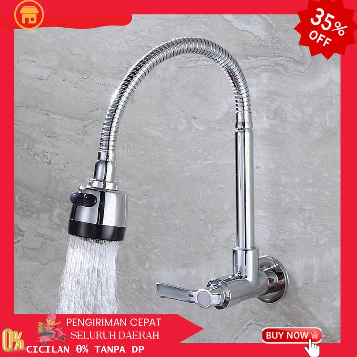 kran air cuci piring SUN Kran Air Angsa Fleksibel Wastafel Tembok Sink Stainless Kuningan Cuci Piring Minimalis