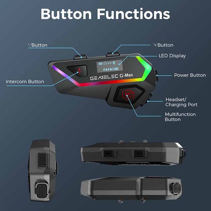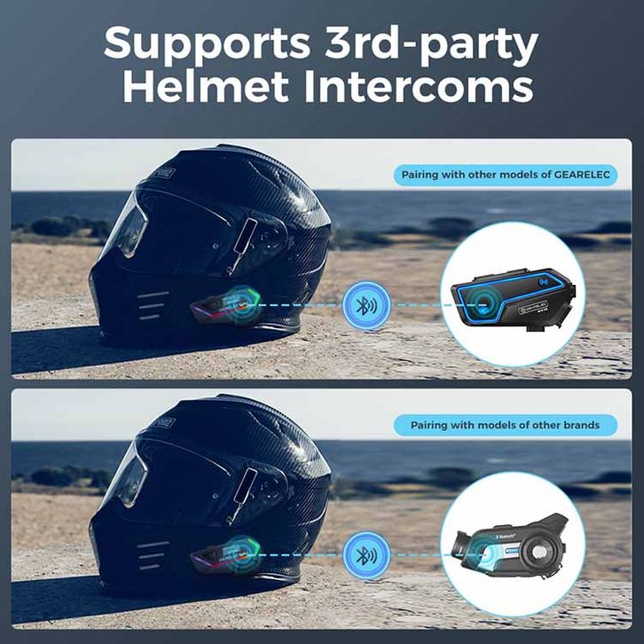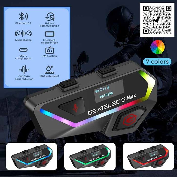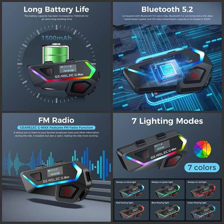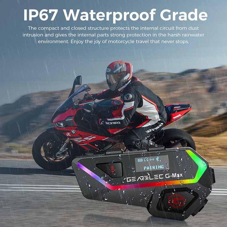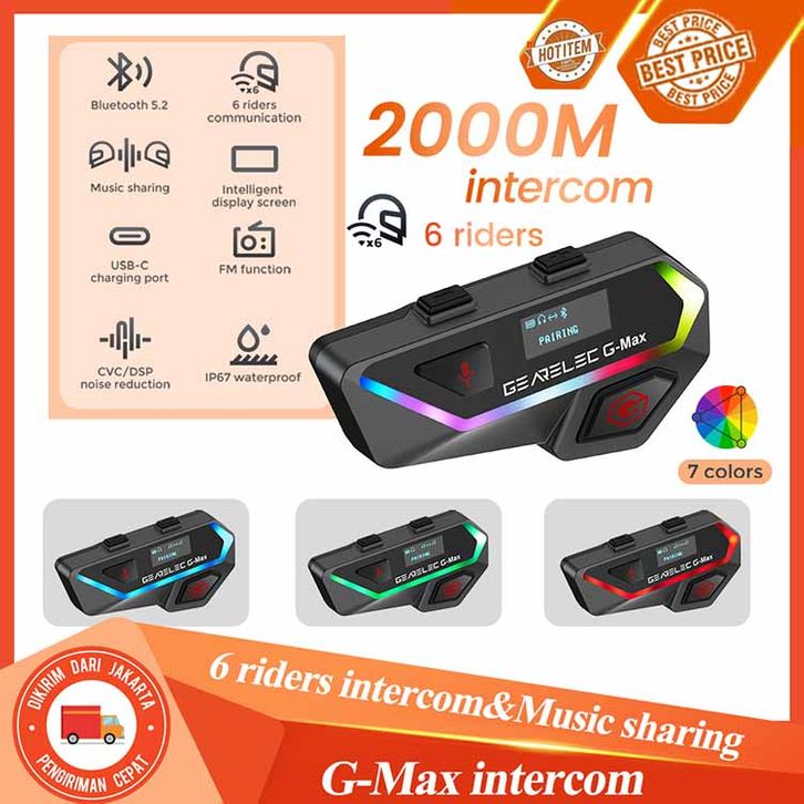 Intercom Helm GEARELEC G-Max Helm Sepeda Motor Headset Interkom Bluetooth 2000m 6 Pengendara BT 5.2 Sistem Komunikasi