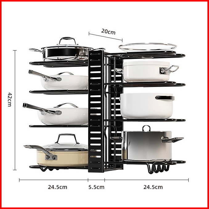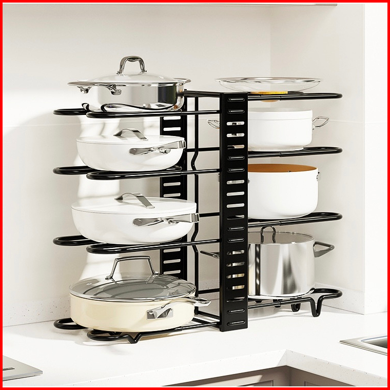Rak Tutup Panci Rak Piring Besi Rak Dapur Stainless Steel Serbaguna 8 Tingkat