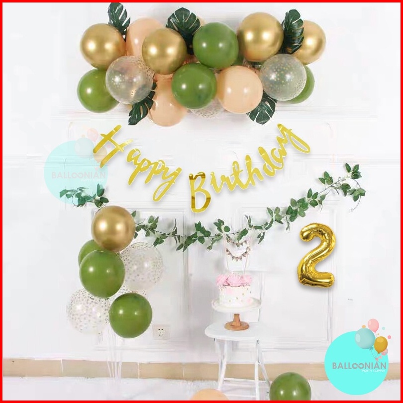 Retro Sage Green And Birthday Decoration Set Dekorasi Ultah Anak Balon Latex Banner Hbd