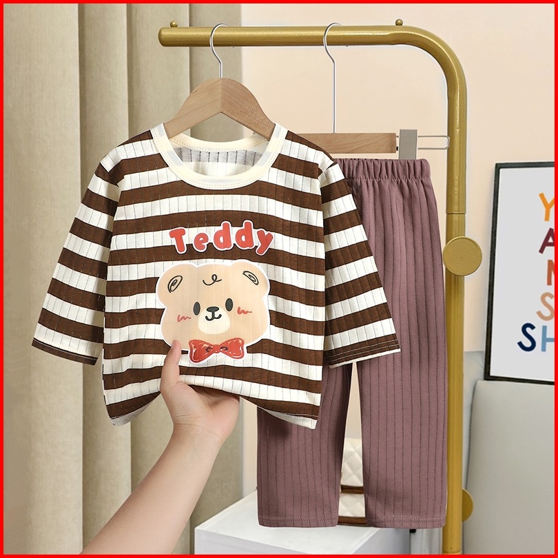 Setelan Piyama Baju Tidur Anak Laki Perempuan Lembut Motif Import