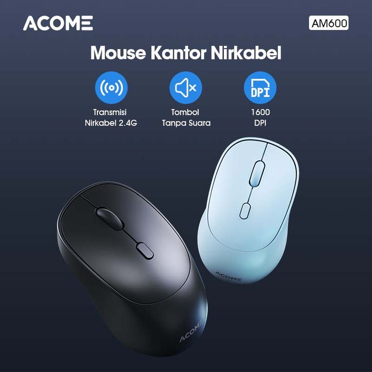 Acome Mouse AM600 Fashion Color Wireless 1600 DPI Silent Click Optical Kursor Akurat Cocok untuk PC Laptop Original