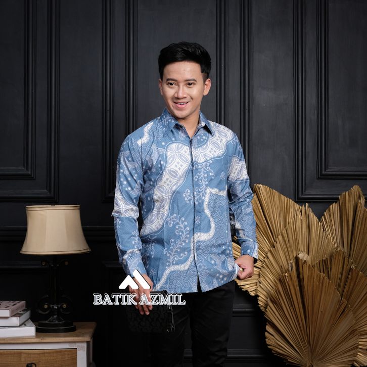 Batik Pria Lengan Panjang BATIK AZMIL motif KERATONAN Kode 003 size M L XL XXL Reguler