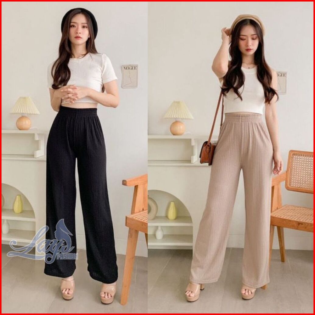 Celana Kulot Wanita Highwaist Knit Berkualitas Hikory Knit Pants Premium