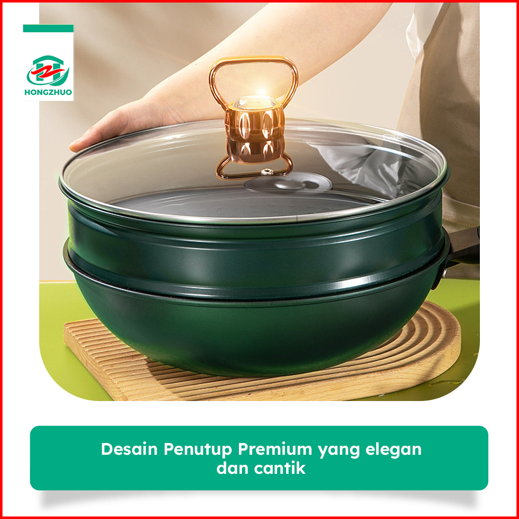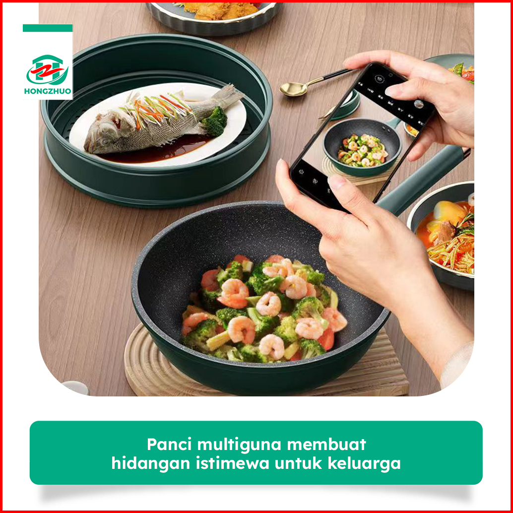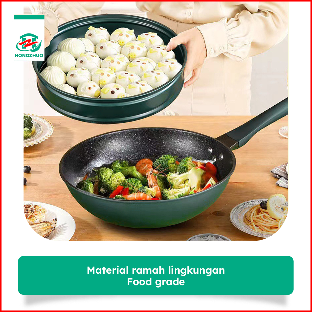 Hongzhuo 3in1 Emerald Green Wajan Batu Medis Dengan Steamer 32 Cm Anti Lengket Hijau Premium Panci Kukus Serba Guna 32cm