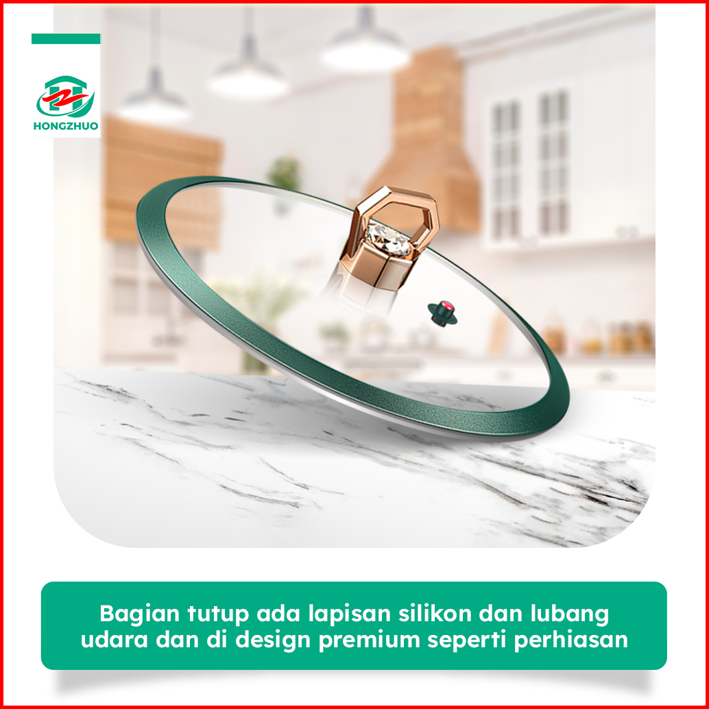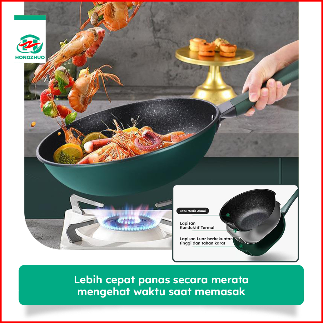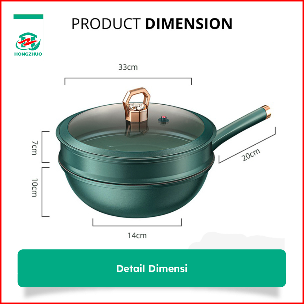 Hongzhuo 3in1 Emerald Green Wajan Batu Medis Dengan Steamer 32 Cm Anti Lengket Hijau Premium Panci Kukus Serba Guna 32cm