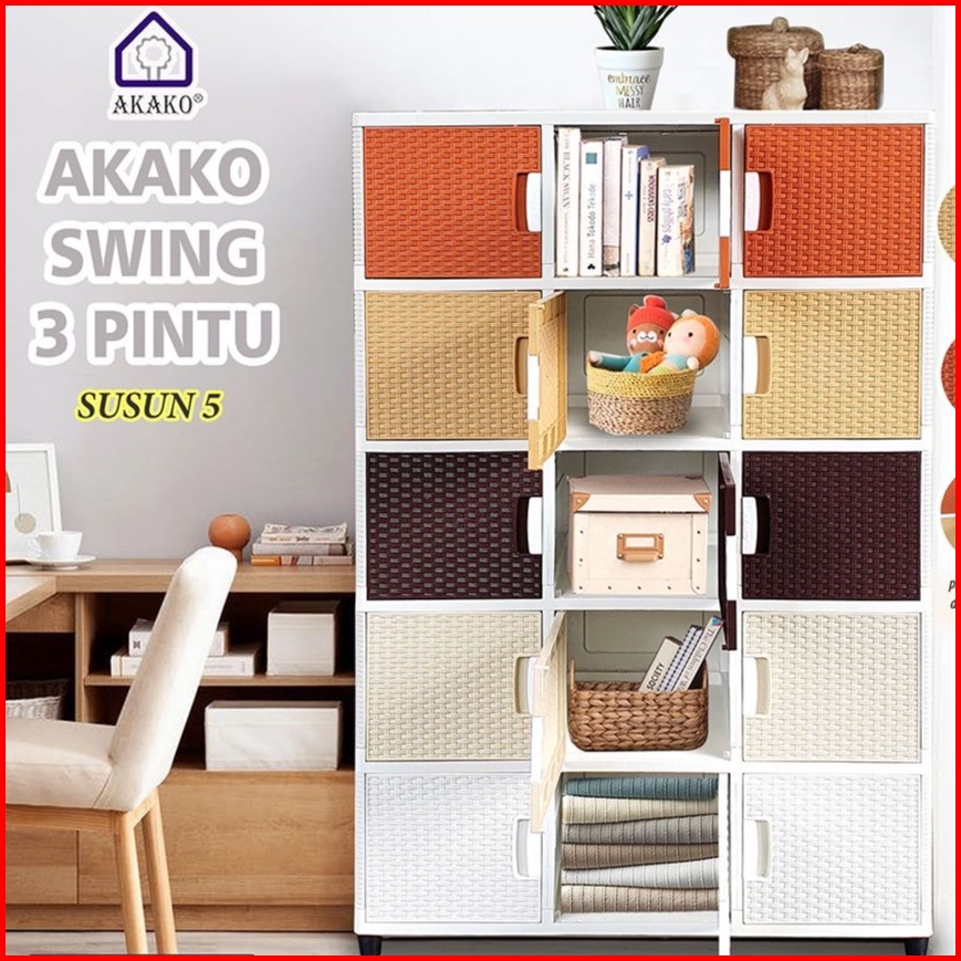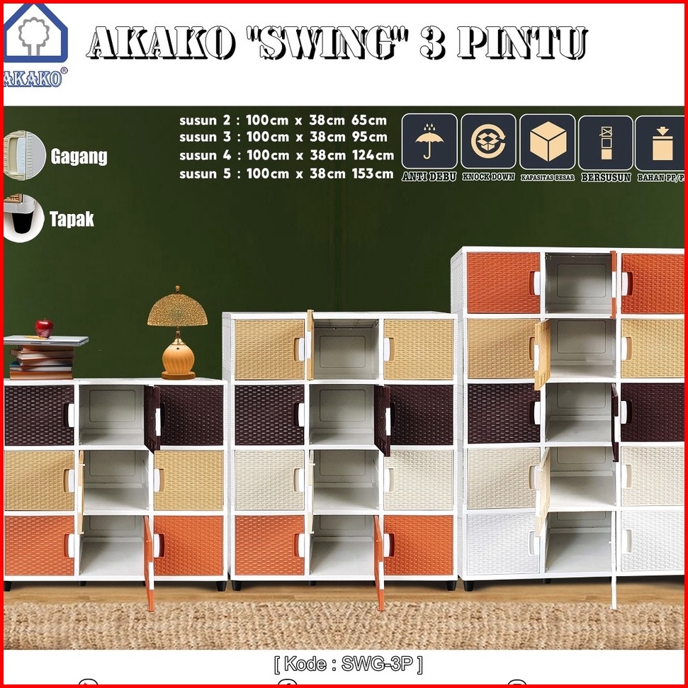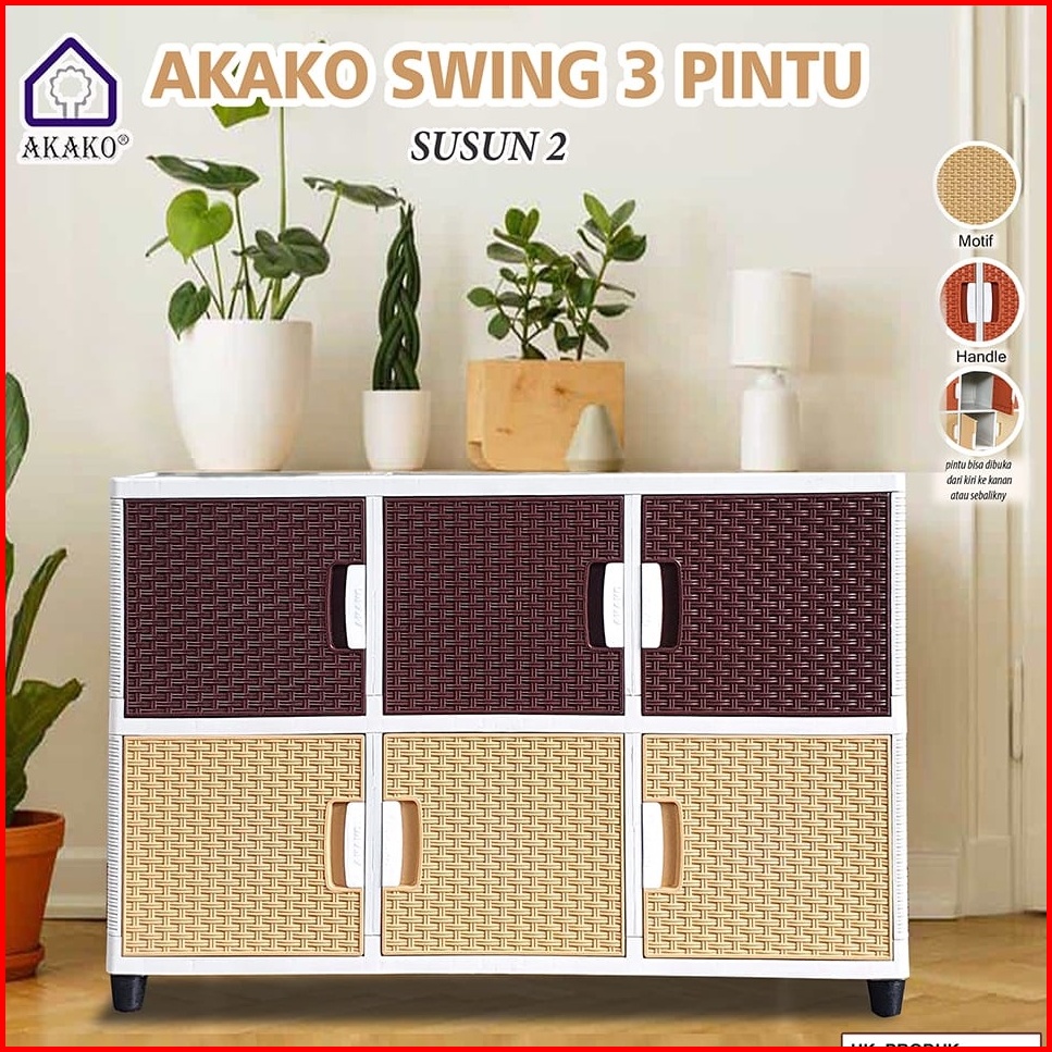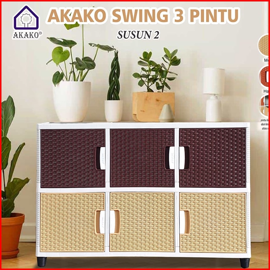 Lemari Akako Swing 3 Pintu Lemari Plastik Multifungsi Lemari Triple Swing Rak Tv Multifungsi