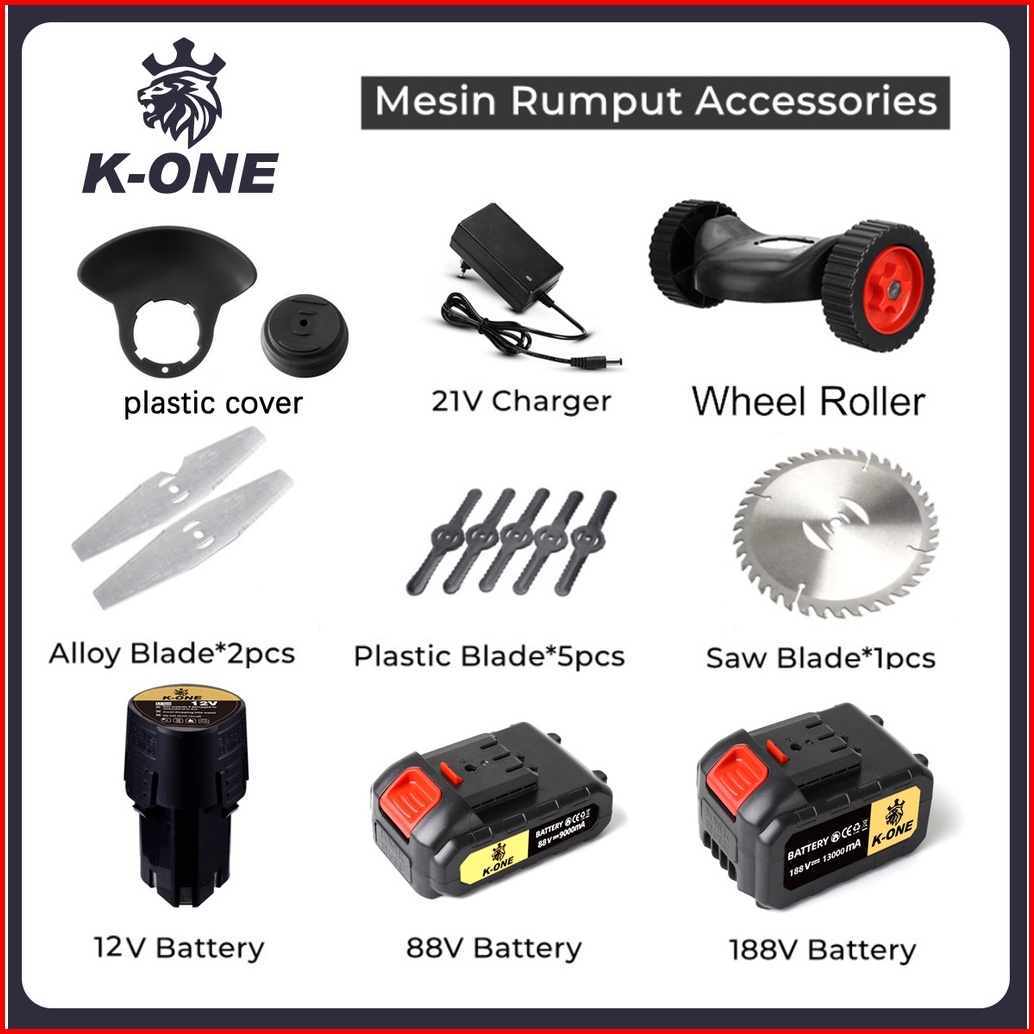 Mesin Potong Rumput Baterai 88v 388v 688v Charger Pisau Baja Gergaji Rol Roda Dan Penutup Plastik