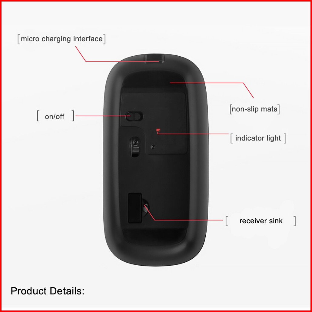 Inone Mouse Silent Click Wireless Slim 2.4ghz 1000 1200 1600dpi Rechargeable Untuk Pc Laptop