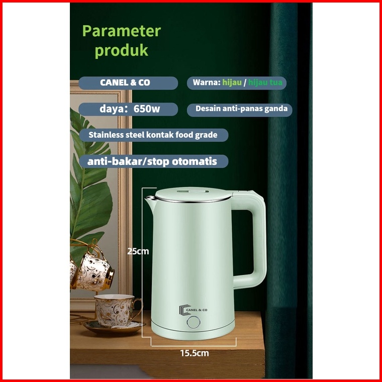 Canel Co Termos Air Panas Teko Listrik Pemanas Air Listrik Water Heater Electric Kettle Boiling 2.0l