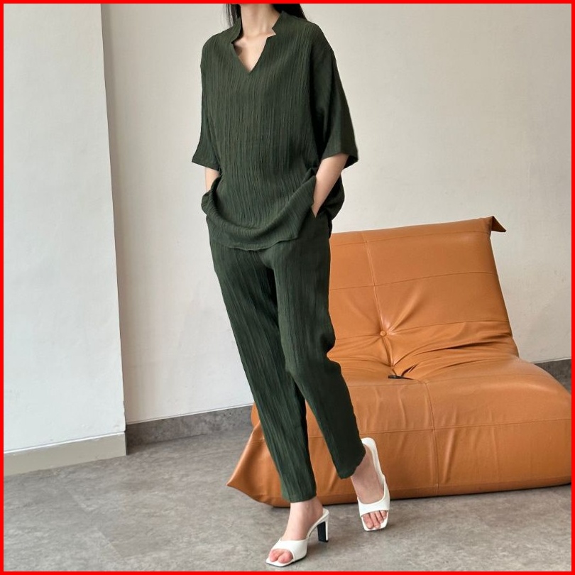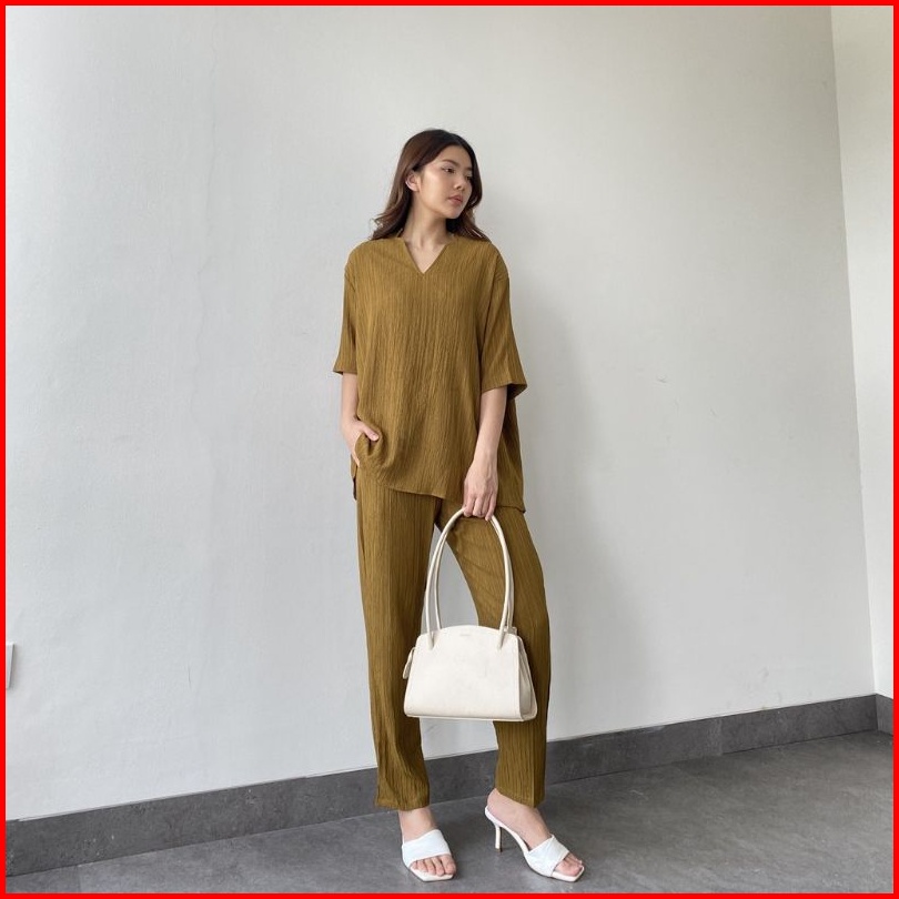 One Set Livia Setelan Lady Crush Polos Baju Celana