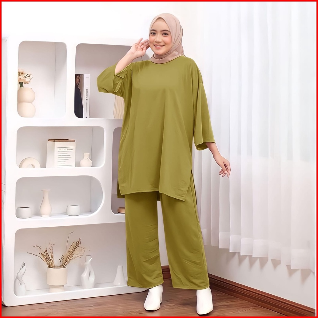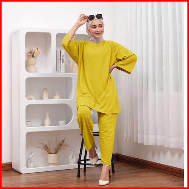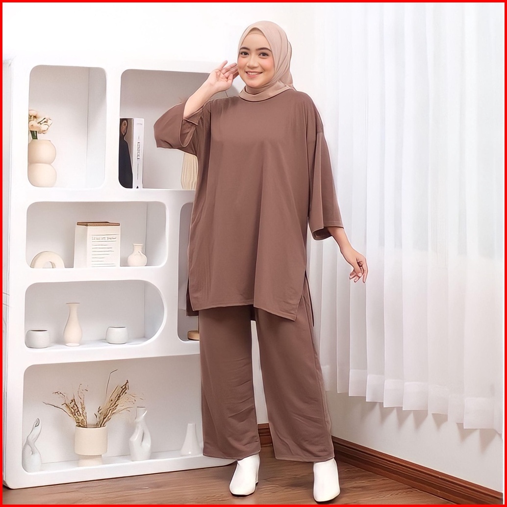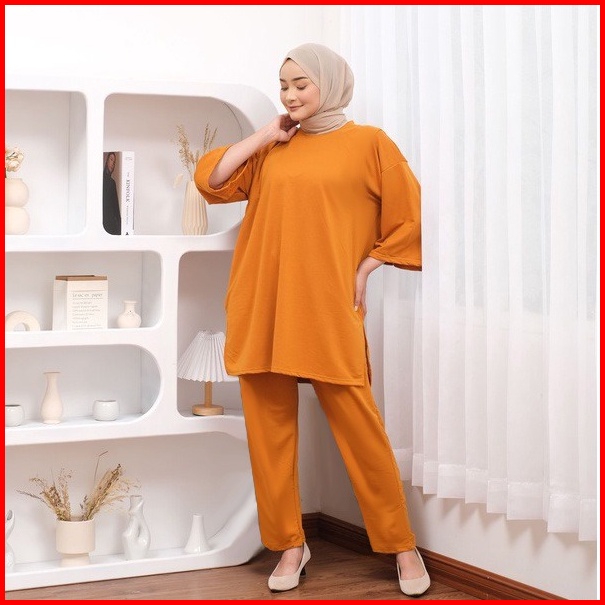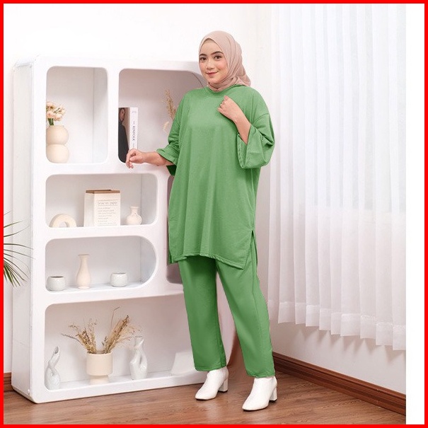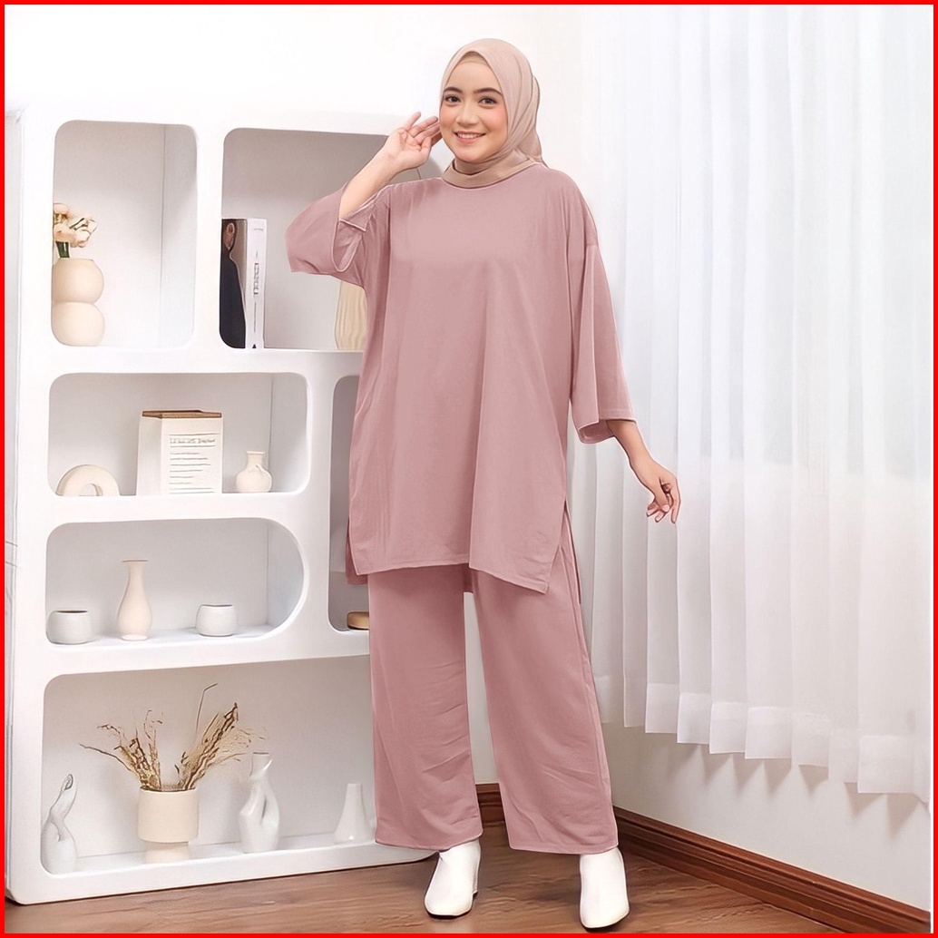 Oneset Polos Jumbo Celana Atasan Oversize Basic Rata Setjumb