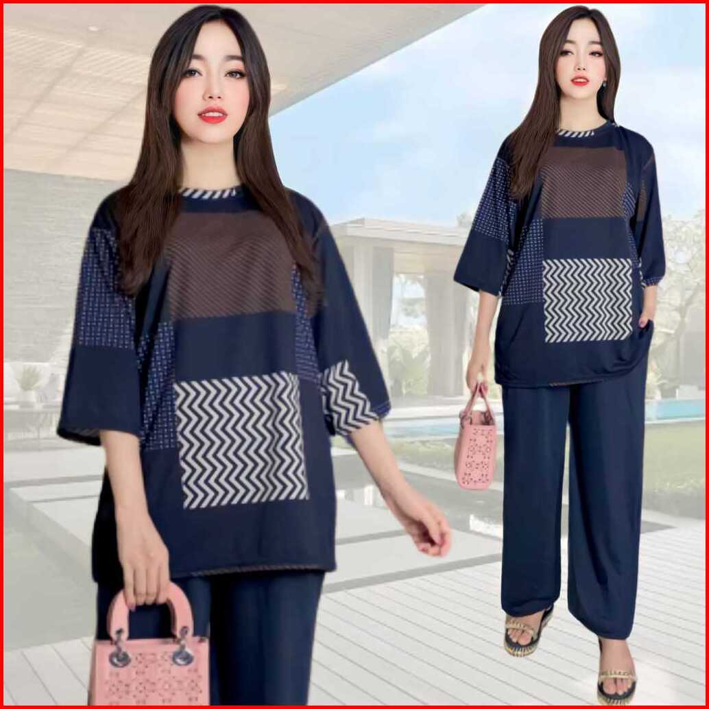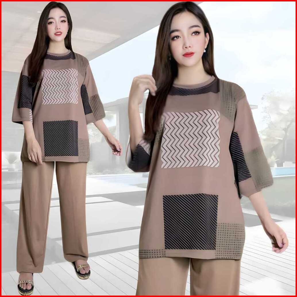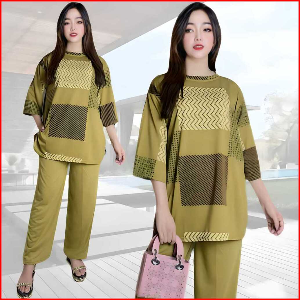 Faberana Ld 120 Setelan Wanita Celana Dan Atasan Oversize Wanita Baju Kantong Kulot Karet Kaos Santai Motif Panjang Dewa