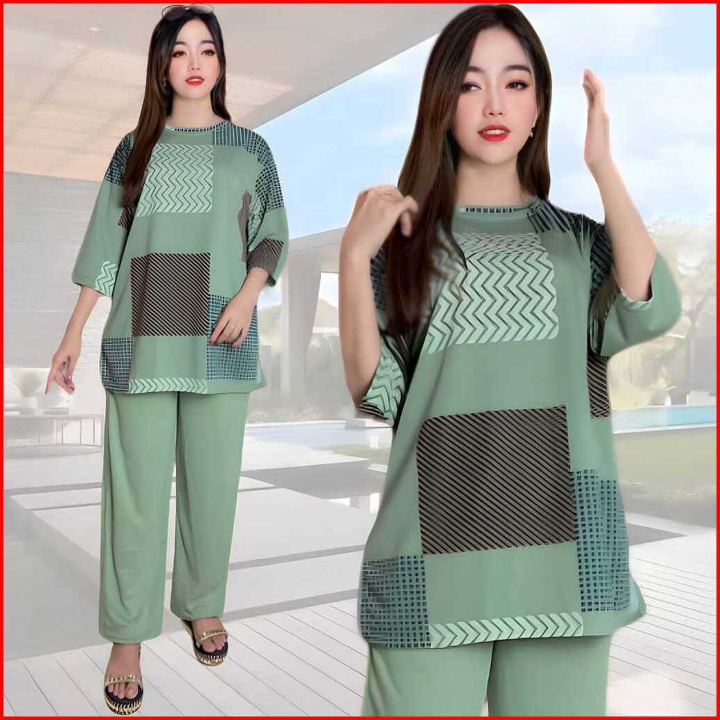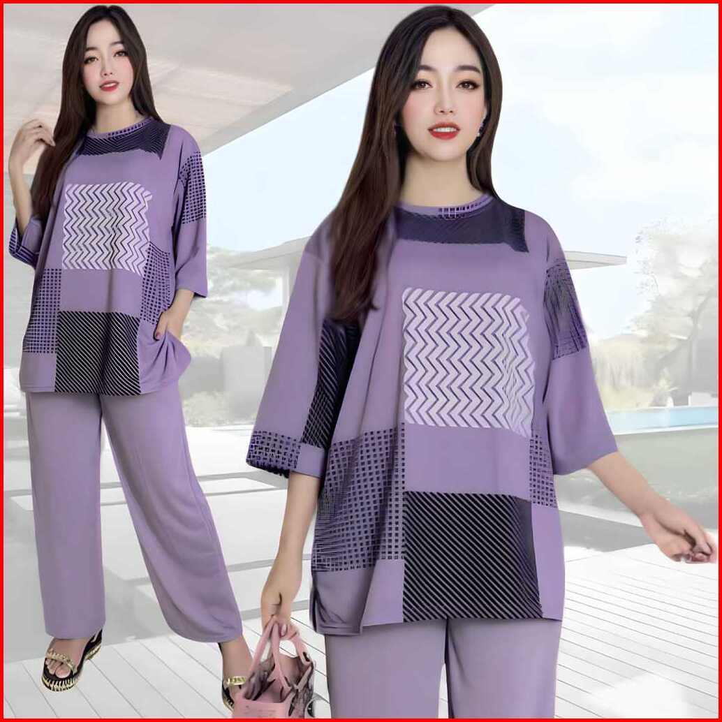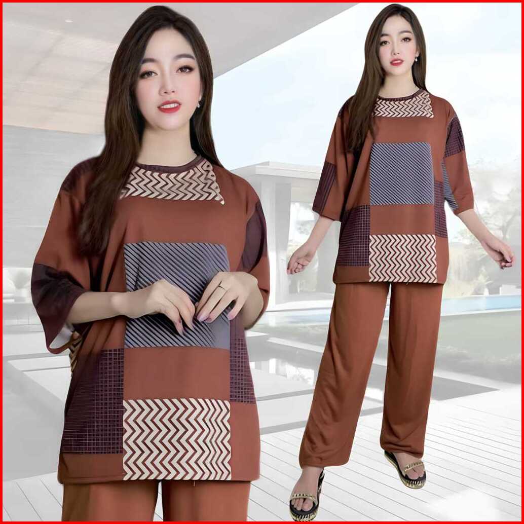 Faberana Ld 120 Setelan Wanita Celana Dan Atasan Oversize Wanita Baju Kantong Kulot Karet Kaos Santai Motif Panjang Dewa