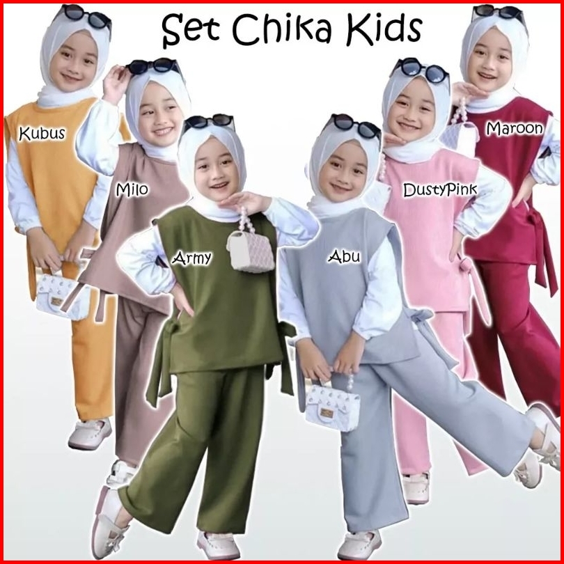 Setelan Muslim Anak Perempuan Setelan Chika 3in1 Tanpa Kerudung 3-12 Tahun