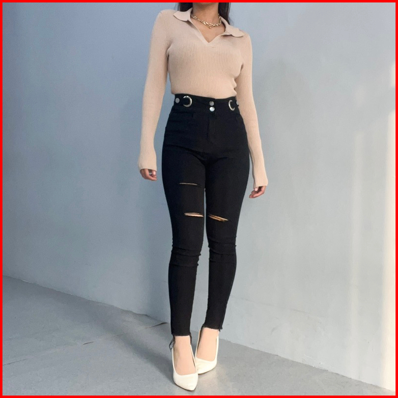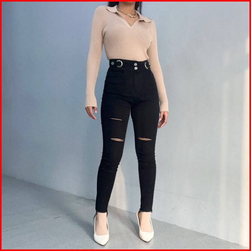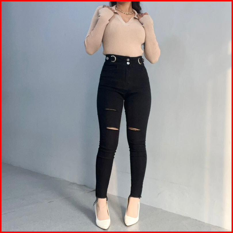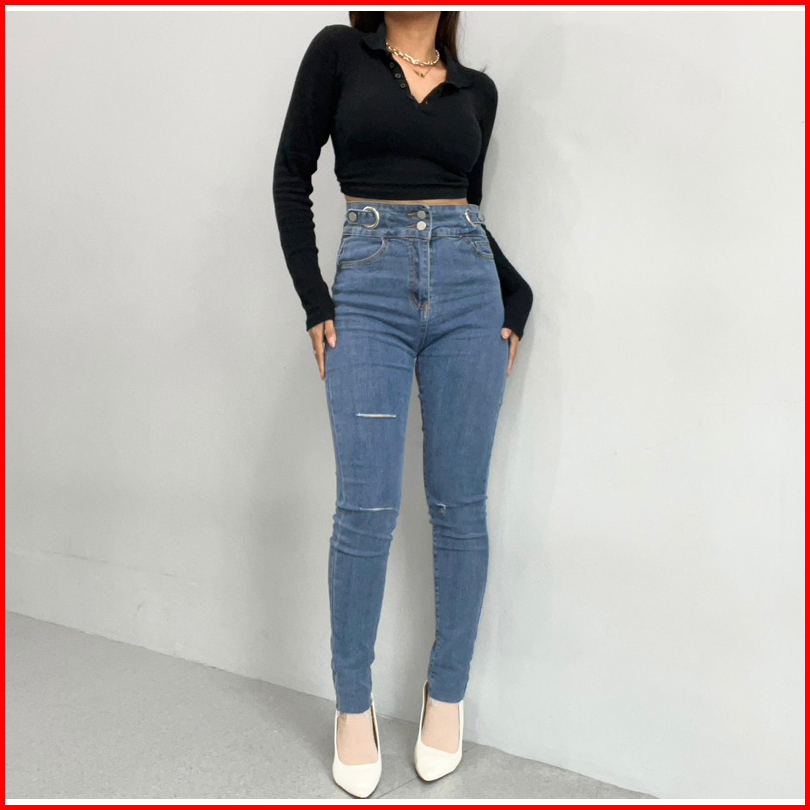Luxe.dlabel - Jeans 147 Celana Panjang Highwaist Wanita Jeans Premium Quality Jeans Wanita Polos Ripped Jeans Highwaist