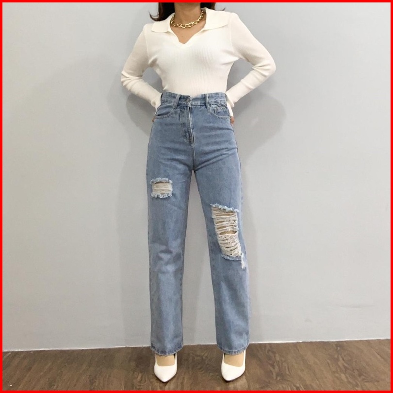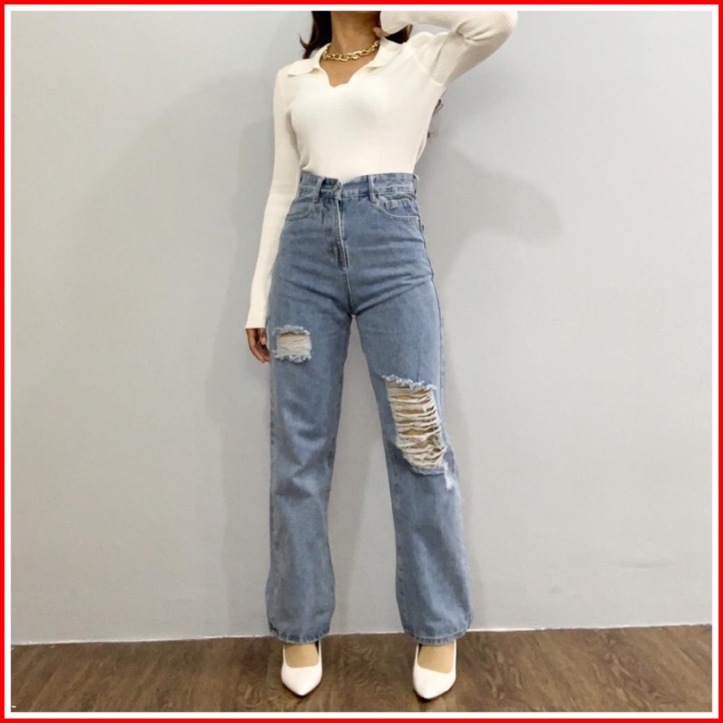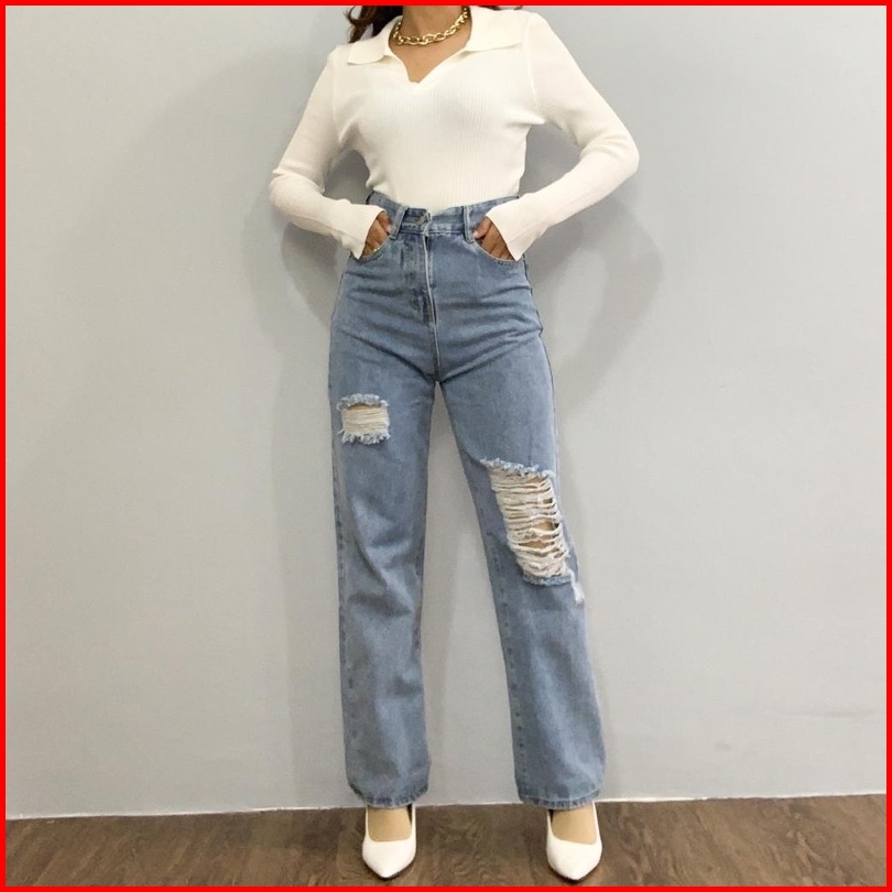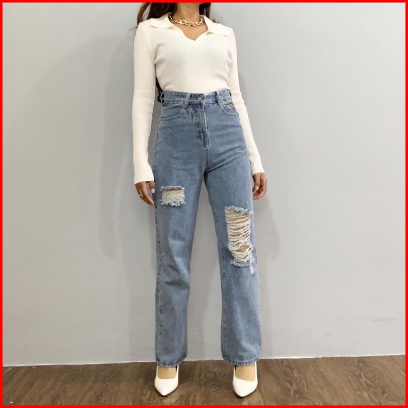 Luxe.dlabel - E9 Jeans Celana Panjang Highwaist Wanita Jeans Premium Jeans Wanita Polos Ripped Jeans High Waist Jeans