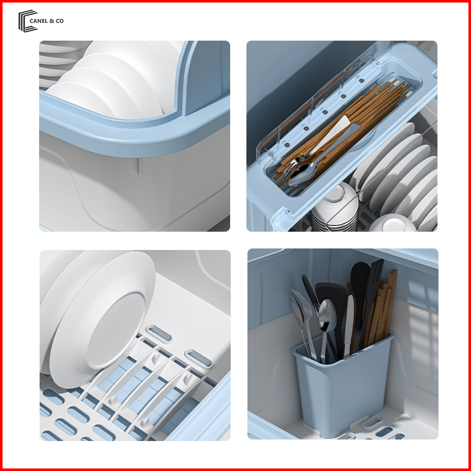 Canel Co Tutup Rak Piring Plastik Rak Pengering Air Mangkok Rak Piring Dengan Tutup Rak Mangkok Sendok Garpu Rak Dapur
