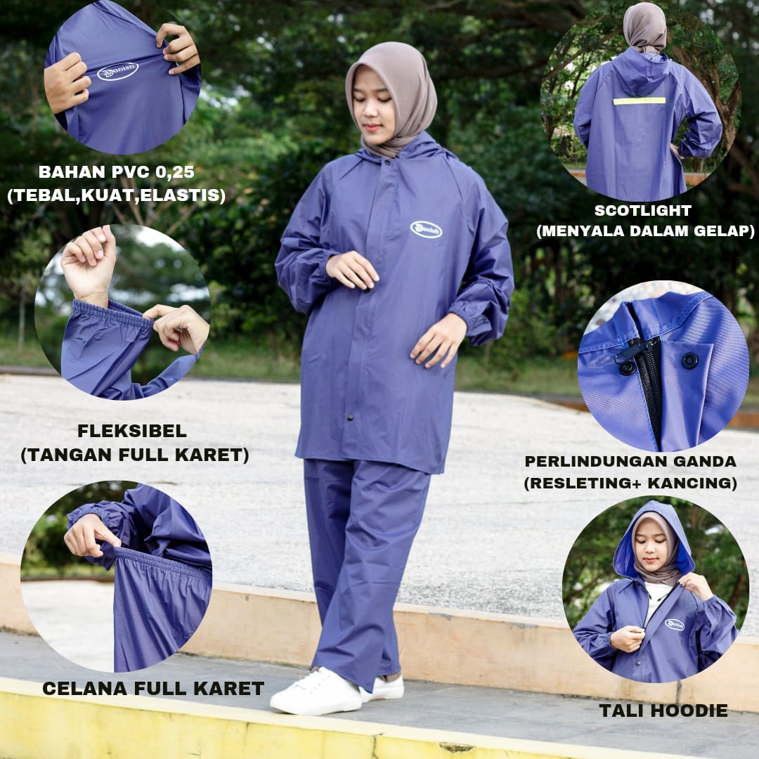 Jas Hujan Pria Wanita Bahan Karet Tebal PVC 0,25 Tahan Air Anti Rembes Mantol Motor Raincoat Dewasa By Danish