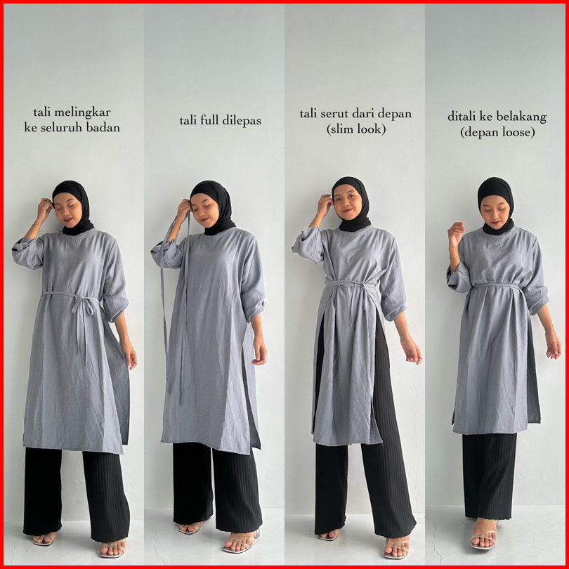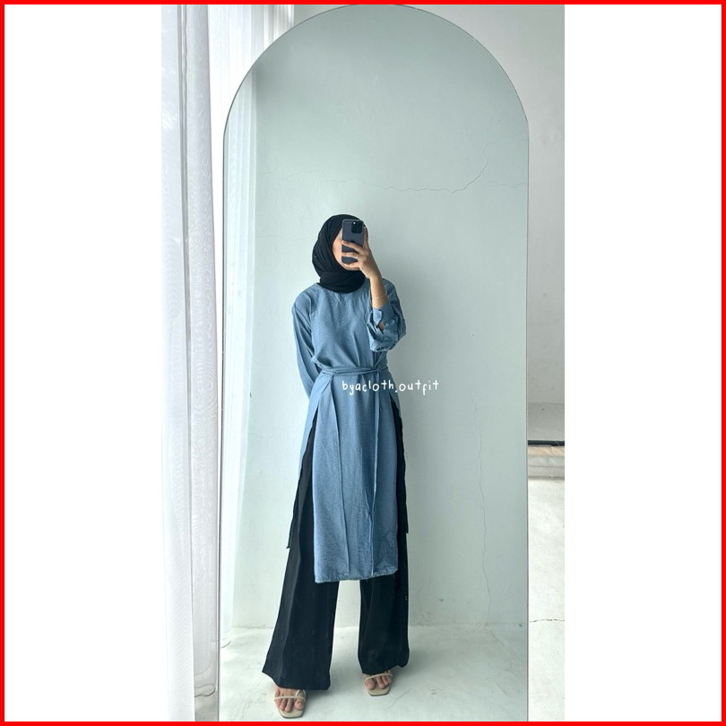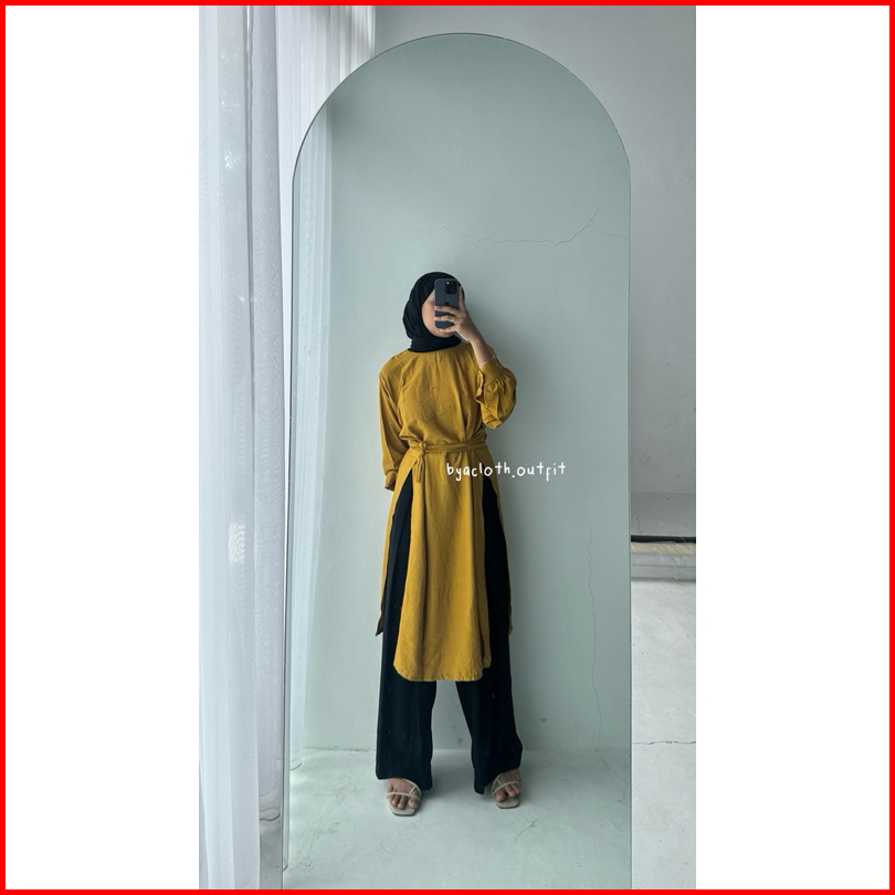 Xavira Tunik Kemeja Oversize Linen Wanita Polo Shirt - Atasan Wanita Lengan Panjang Oversize - Baju Kantor - Kemeja Mult