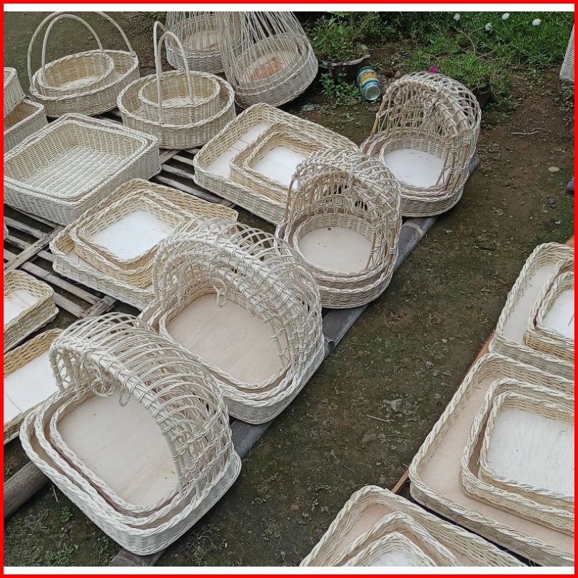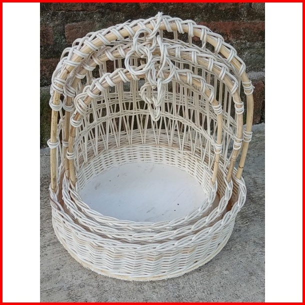Ready Stok Keranjang Ayunan Bulat Seserahan Parcel Pernikahan Keranjang Sangkar Keranjang Parcel Full Rotan Halus 1 Set