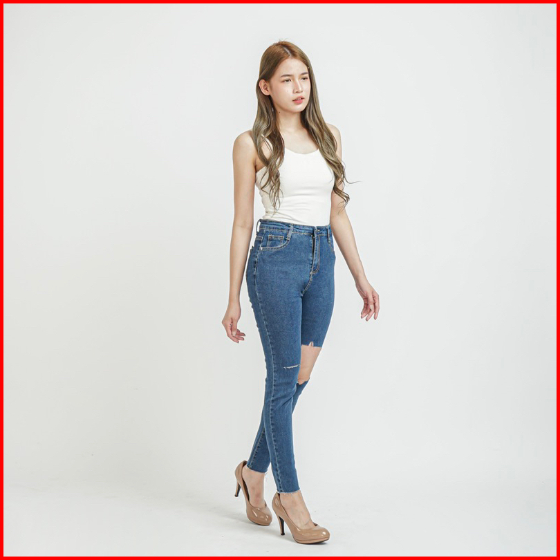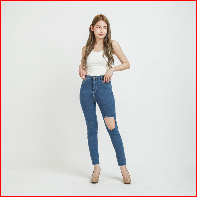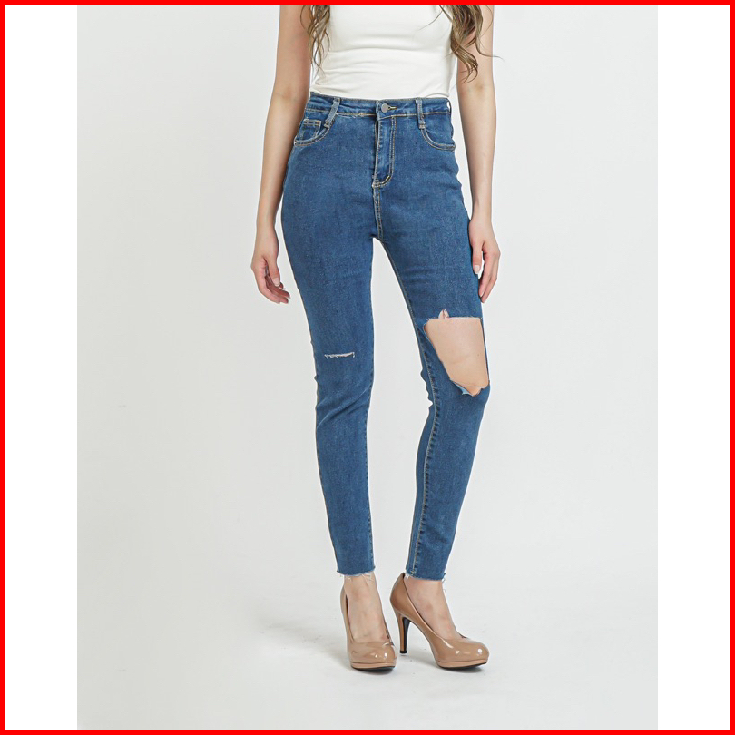 Luxe.dlabel - D77 Jeans Celana Panjang Highwaist Wanita Jeans Premium Jeans Wanita Polos Ripped Jeans High Waist Jeans W