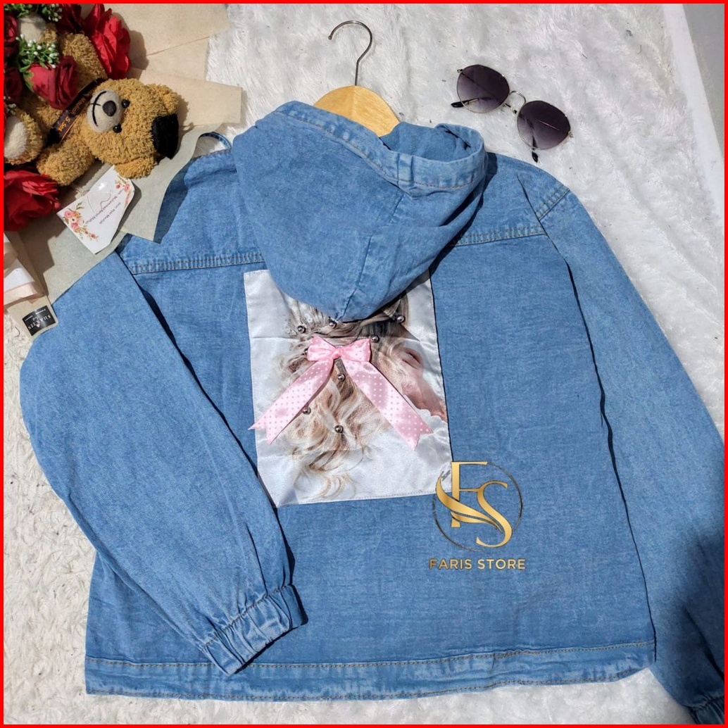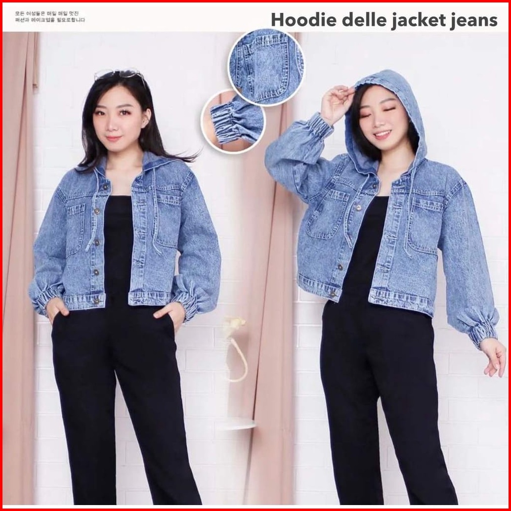 Jaket Jeans Wanita Hoodie Jacket Denim Tebal Jumbo Korean Style Terbaru