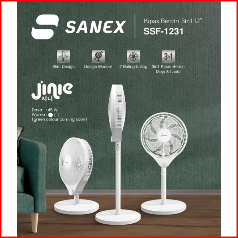 Sanex Stand Desk Fan Kipas Angin Meja Berdiri 2 In 1 12 Inch 7 Baling Ssf-1221 N Design Modern Minimalis Baling Bening T