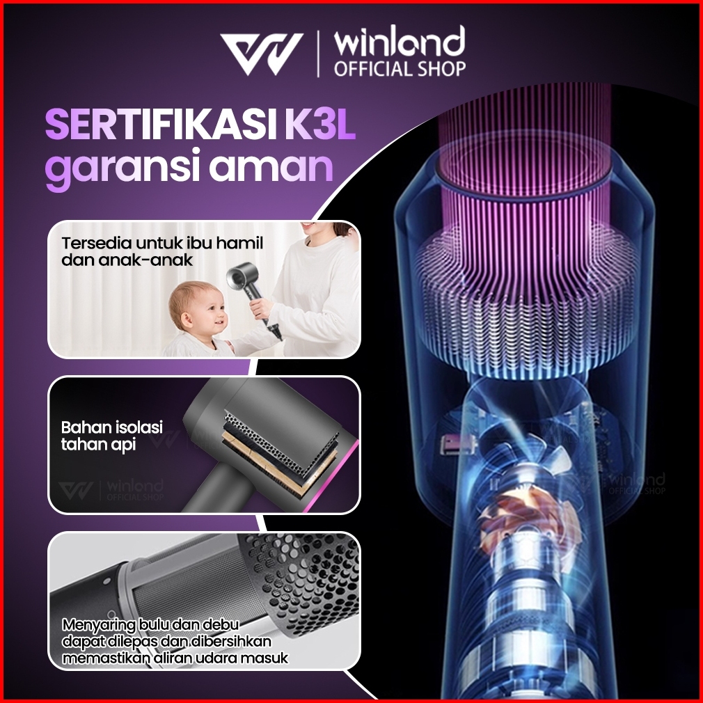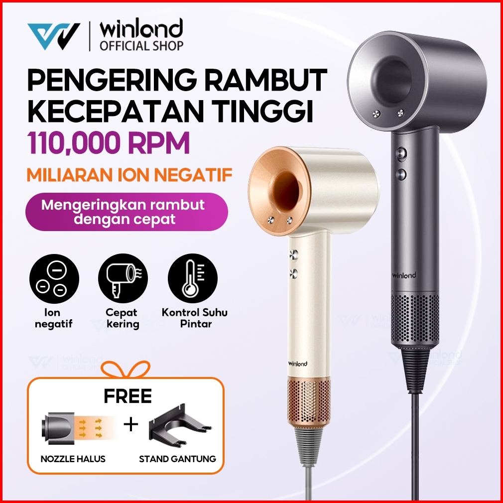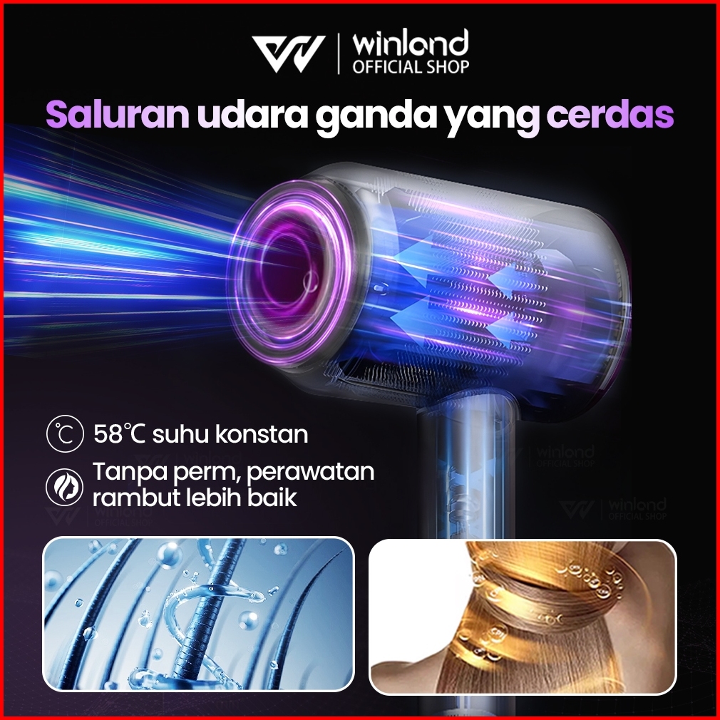 Winland High Speed Hairdryer Rambut Pengering Professional Negative Ion Portable Hair Protection 150000 Rpm Blower Stron