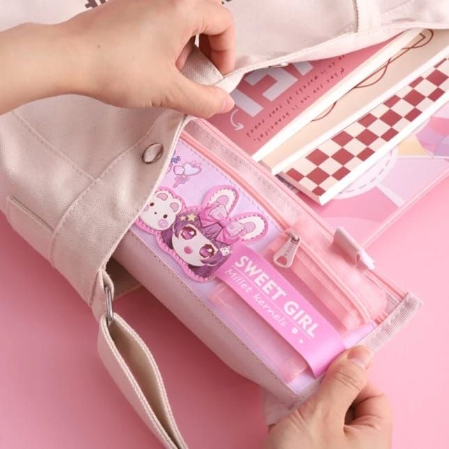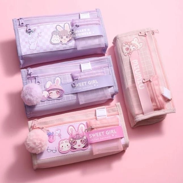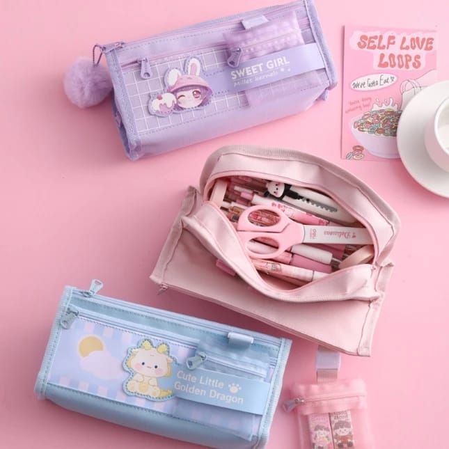 Kotak Pensil Ala Korean Student Motif Kartun Lucu / Tempat Pensil Karakter Kartun Lucu / Dompet Pensil Anak