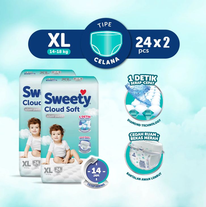 Paket 2 ball Sweety Silver Pants Tape Popok Bayi Perekat NB-S40/S38 /M32 /L28 /XL24 /XXL22