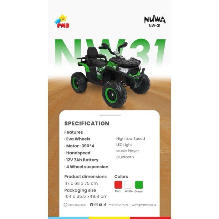 Mainan Anak Motor ATV Aki PMB NW 31 Motor ATV Anak Listrik Aki - Merah Scooter Anak Roda 3