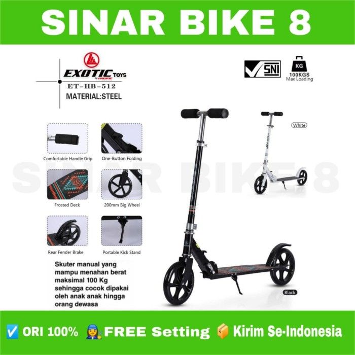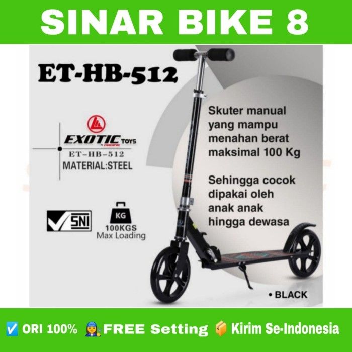 Scooter EXOTIC ET HB 512 Manual Anak Dewasa Max 100 Kg Otoped - Black Scooter Anak Roda 3