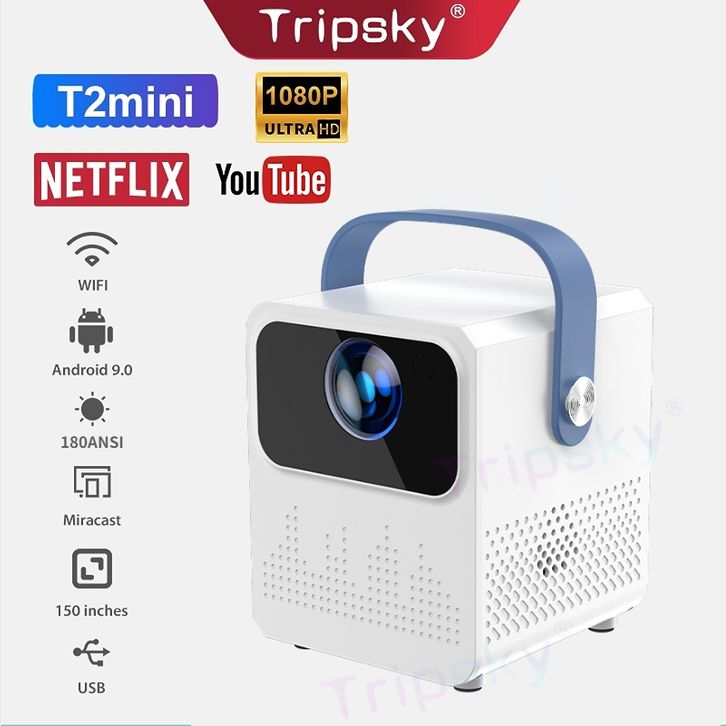 SHADE PROYEKTOR TV T2MINI 6000 LUMEN 4K HD PROJECTOR HP SMART ANDROID BLUETOOTH 9 2G 16G MIRRORING BERGARANSI TANPA DP