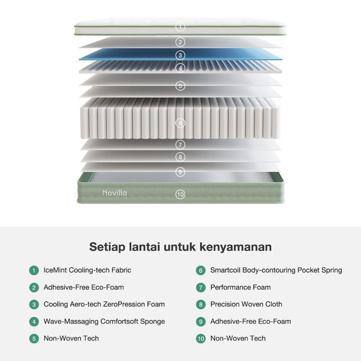 [Mall] Novilla Kasur Springbed Pocket Spring Tebal 25cm -FREE Bantal- Nyaman Berkualitas Tanpa Suara Empuk